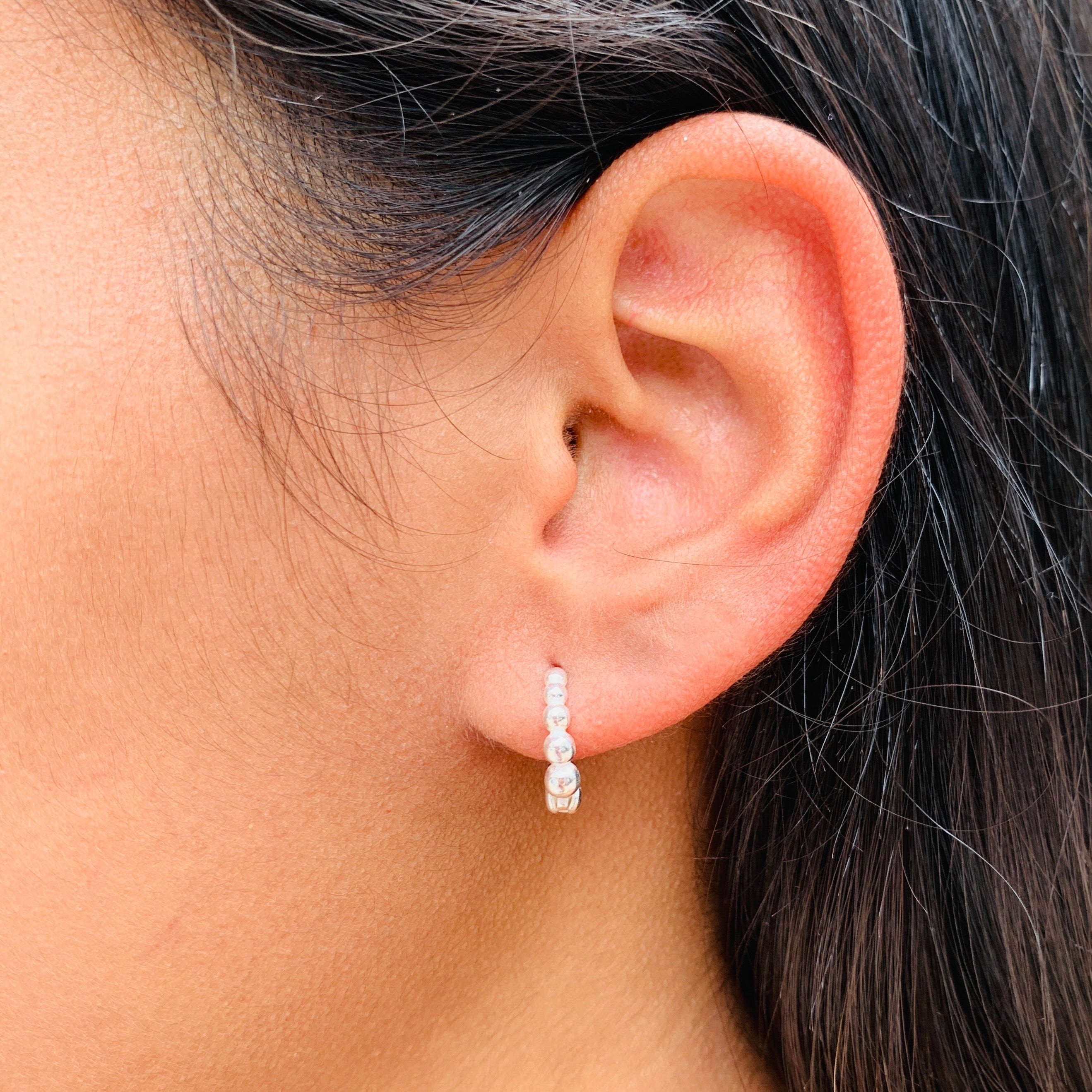Embrace subtle beauty with our Mini Beaded Hoops, designed to add a delicate touch of elegance to any look. The intricate sterling silver beading enhances their timeless appeal, making them an effortless choice for both casual and special occasions.