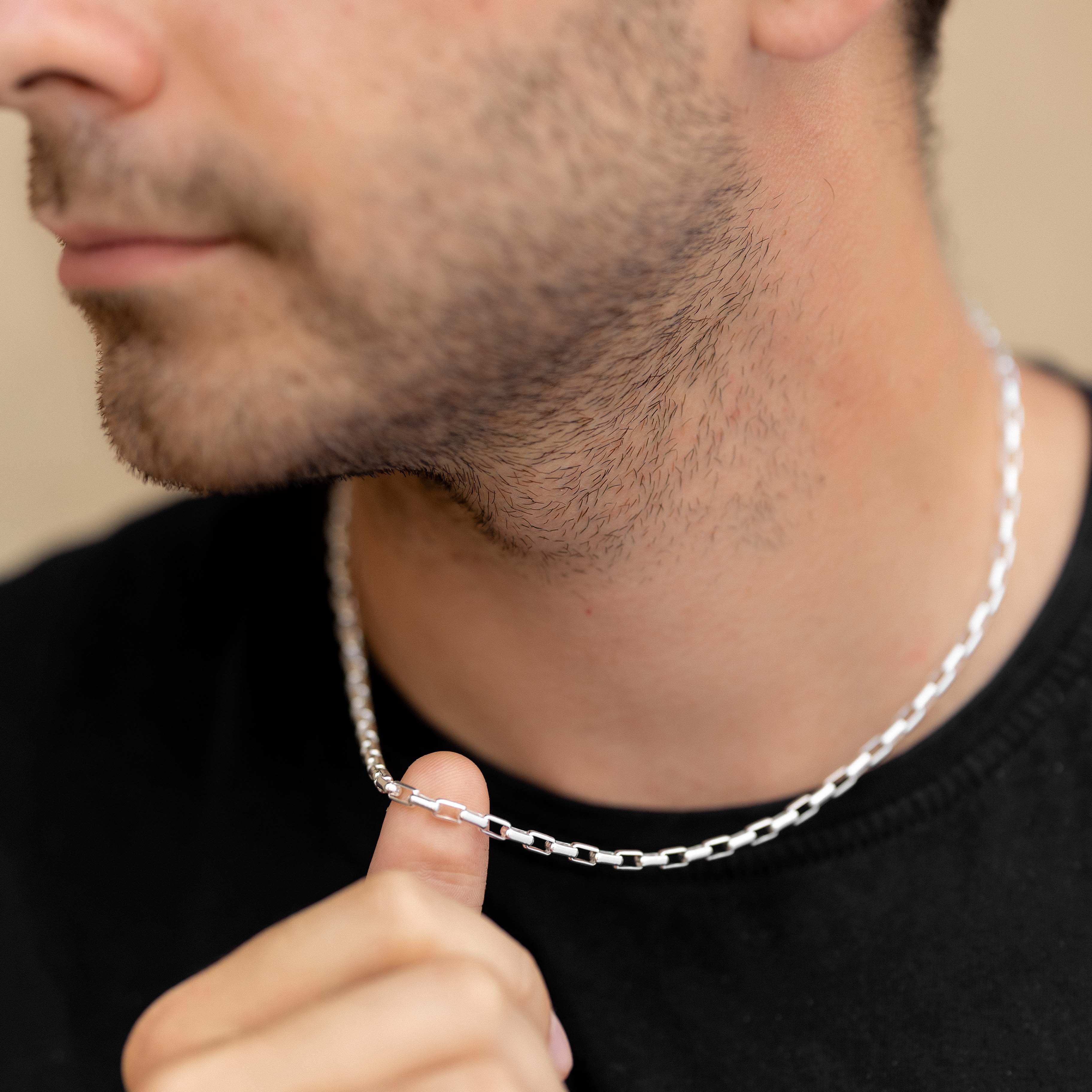 Whether worn solo or layered, this silver chain adds strength and sophistication to his signature style.