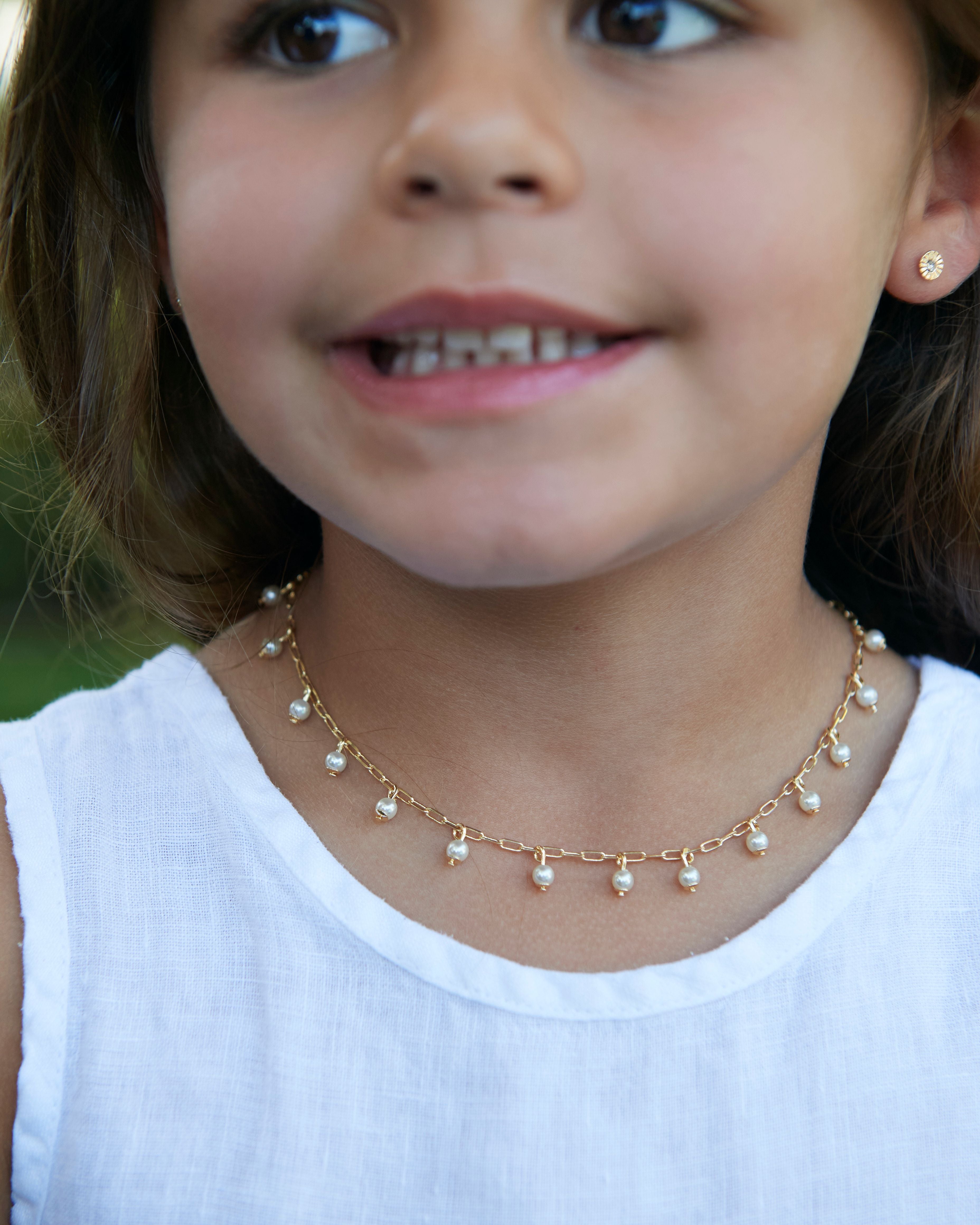 Our Aether Pearl Necklace is designed to stand out while remaining simple and stylish. Each pearl dances gently from a dainty chain, adding a graceful touch to every twirl, giggle, and milestone moment.