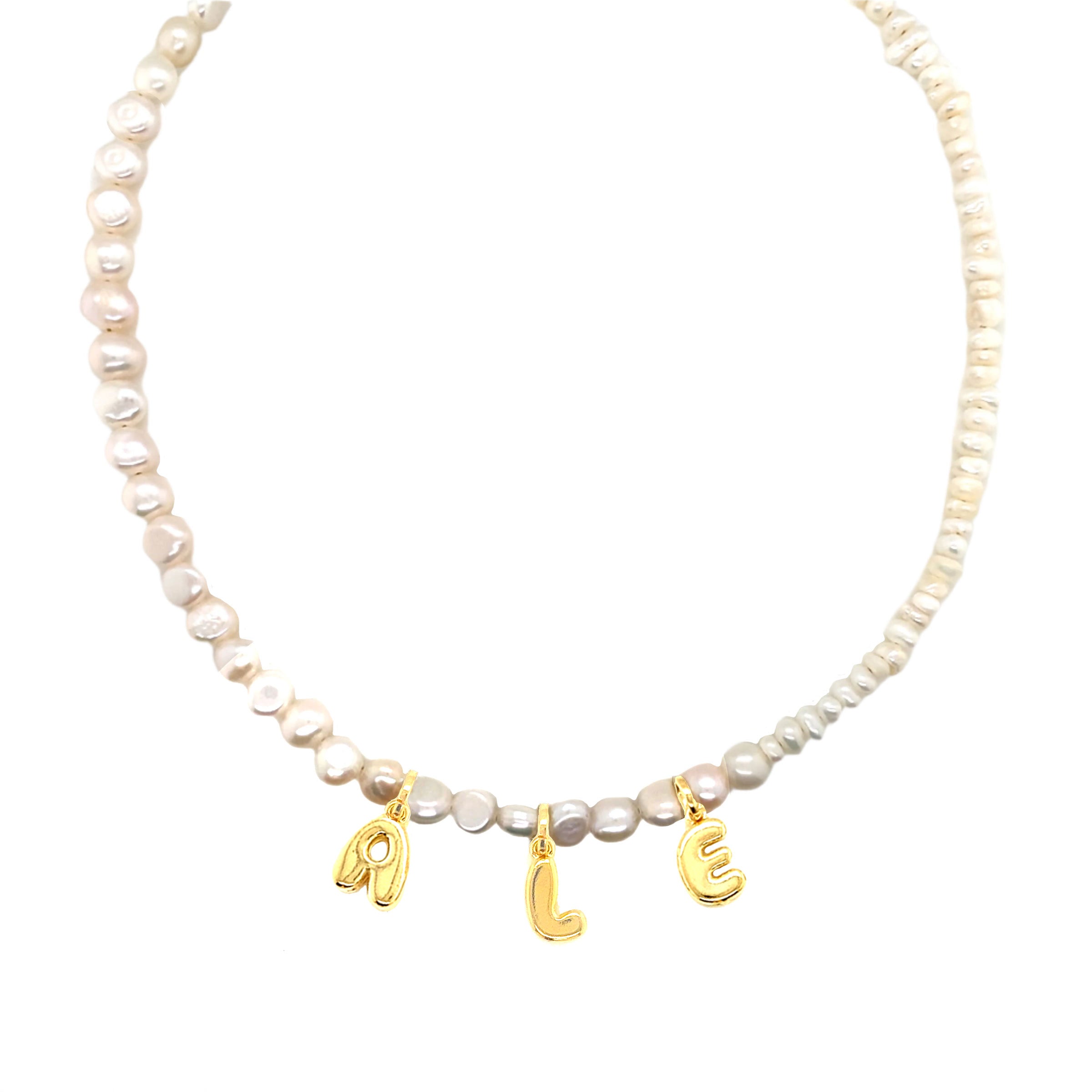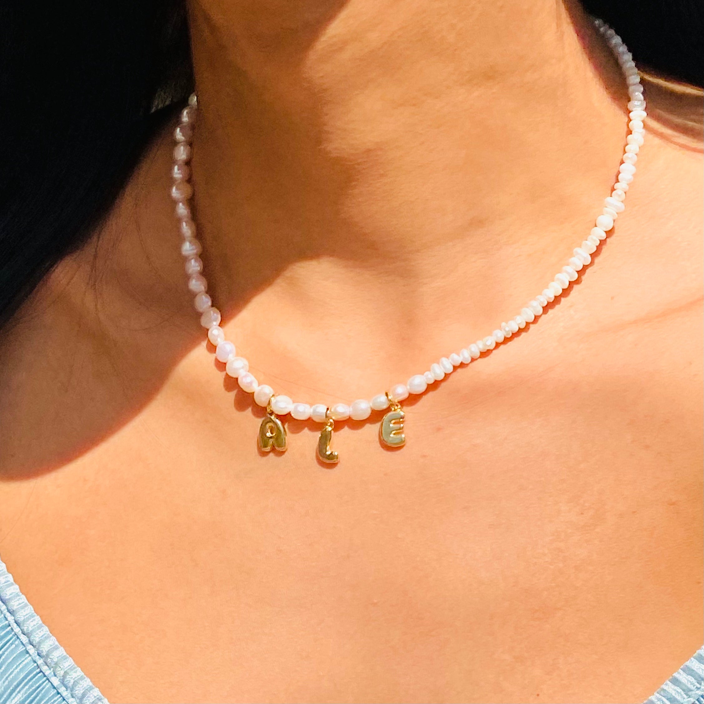Cherish your family with our Bubble Initial Pearl Necklace, a beautiful, personalized gift designed to carry their initials close to your heart. Each necklace is made with freshwater pearls creating a timeless piece that’s both sentimental and stylish. Whether for a mother, grandmother, or special loved one, this necklace is a perfect way to keep their loved ones initials close.