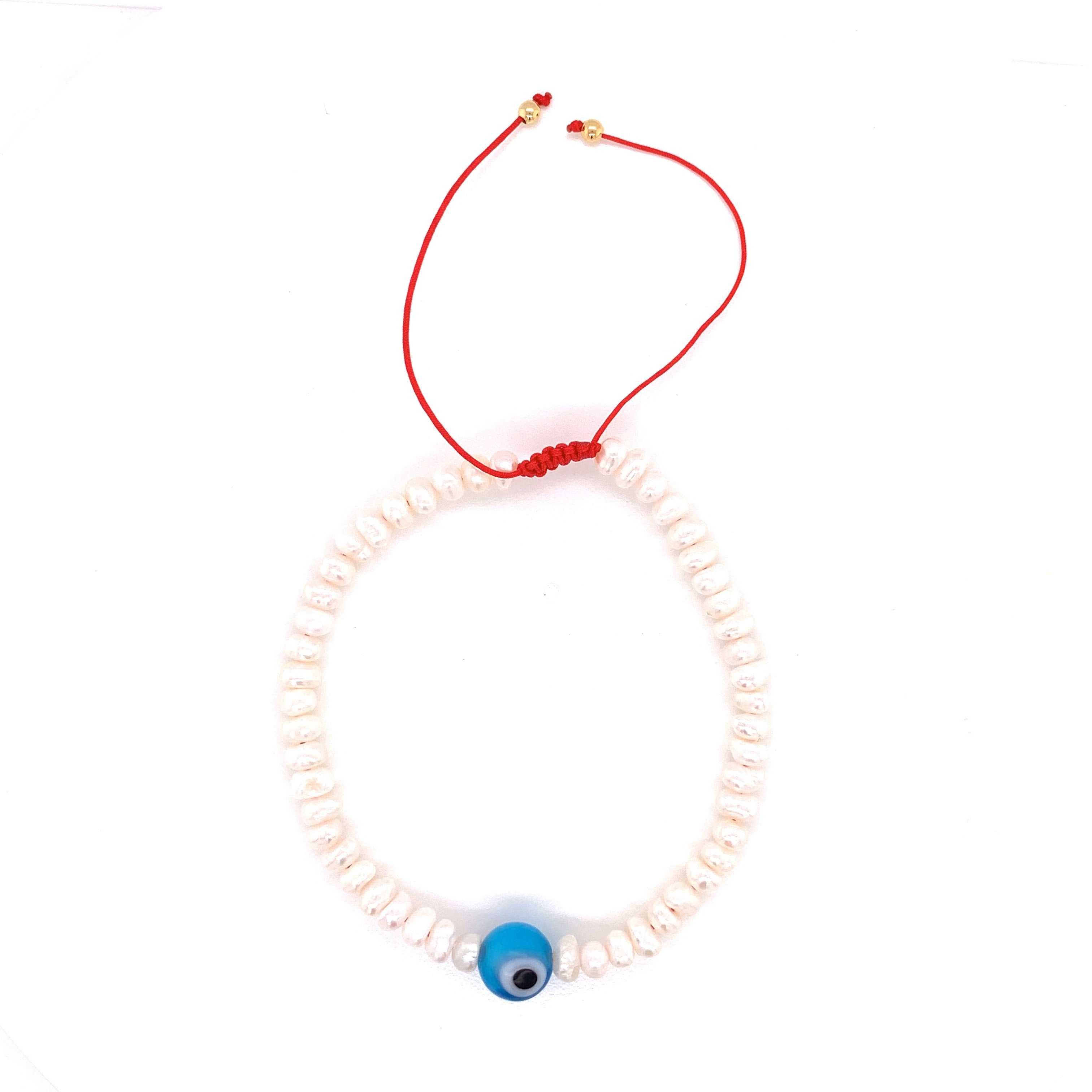 Pearl Lucky Eye Bracelet blends elegance with deep symbolism, featuring a strand of lustrous pearls and a protective lucky eye charm at its center. Designed to bring both beauty and positive energy, this bracelet is a timeless addition to any jewelry collection.