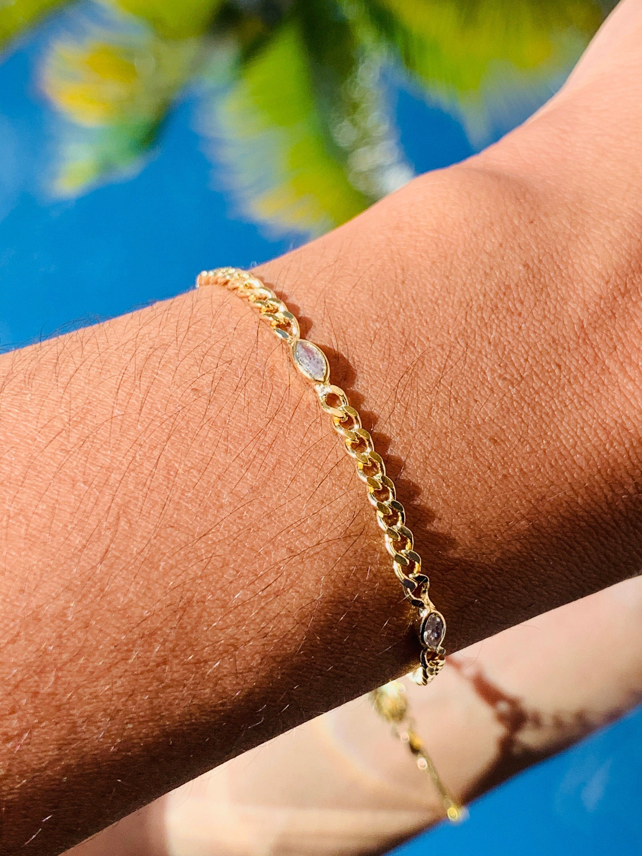 Our Jada Curb CZ Bracelet seamlessly blends the timeless appeal of a classic curb bracelet with the dazzling brilliance of CZ stones. Each link is meticulously crafted to reflect light beautifully, proving that even the simplest designs can make a bold statement. Elegant yet effortless, this piece is perfect for both everyday wear and special occasions.