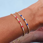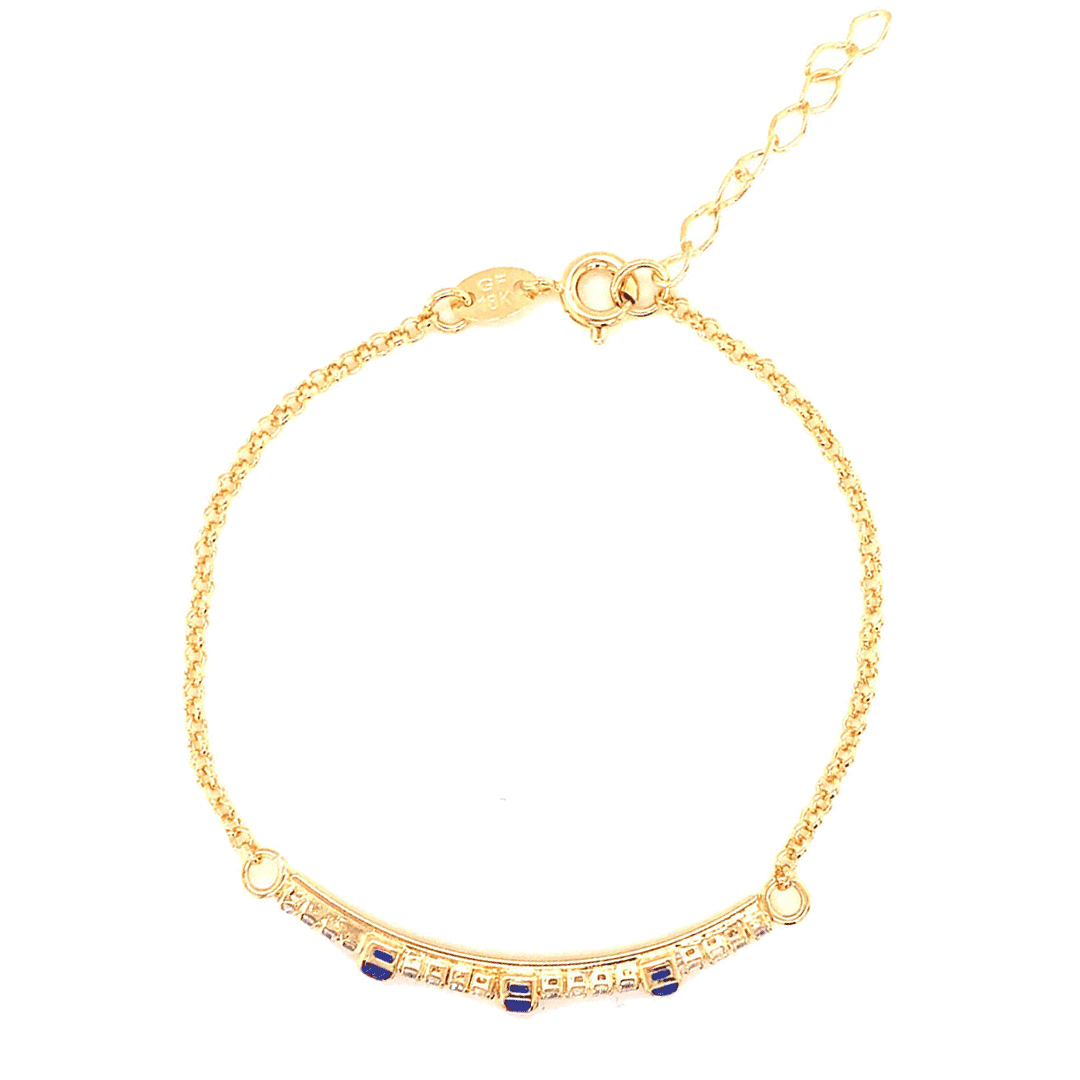 Make a statement with our CZ Gold-Filled Bar Bracelet, a dazzling piece that radiates timeless beauty and sophistication. Designed with meticulous craftsmanship, this bracelet features a sleek gold-filled bar adorned with sparkling cubic zirconia stones that mimic the brilliance of diamonds. Whether worn alone or layered, it adds a touch of elegance to any ensemble.