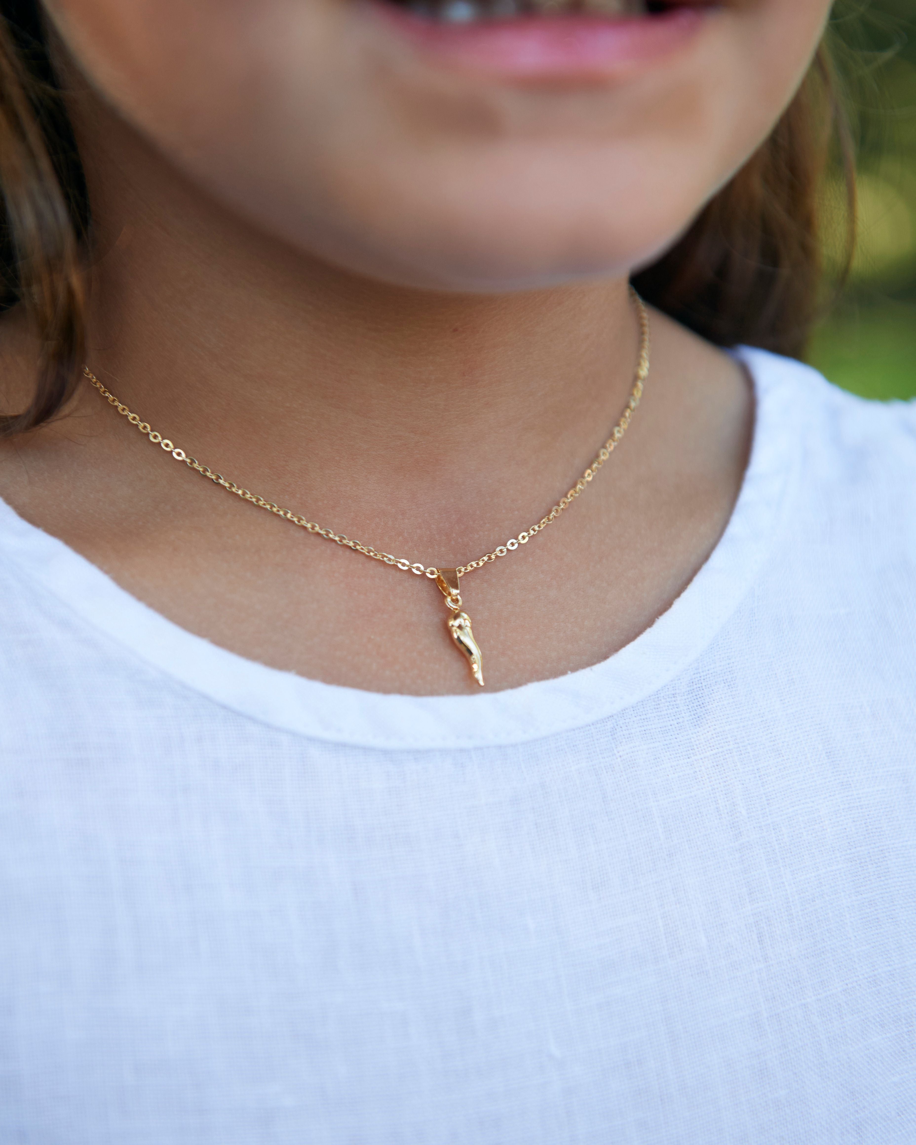 Our gold-filled Cedar Cornicello Charm Necklace for girls is a timeless symbol of protection, good luck, and Italian heritage. Petite yet powerful, this delicate charm is worn as a talisman to ward off negativity and celebrate strength and spirit.