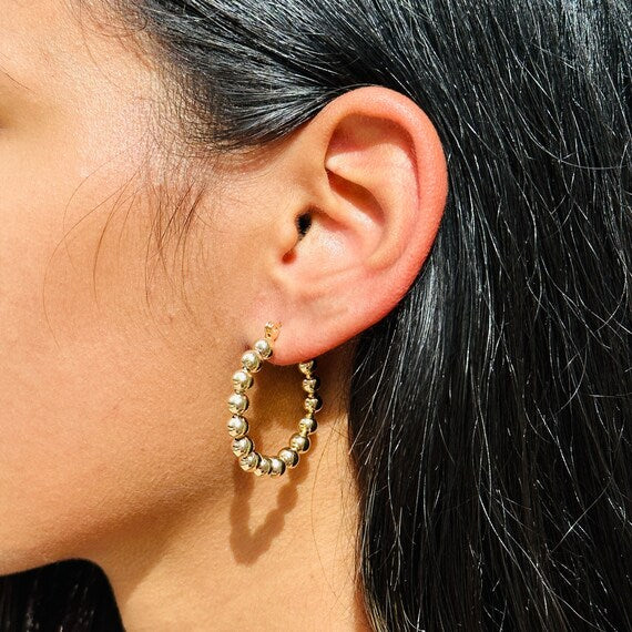 Bring texture and personality to your look with our Gold Filled Nori Chunky Beaded Hoops. Their playful yet polished design makes them a standout piece for those who love jewelry that feels both effortless and expressive.