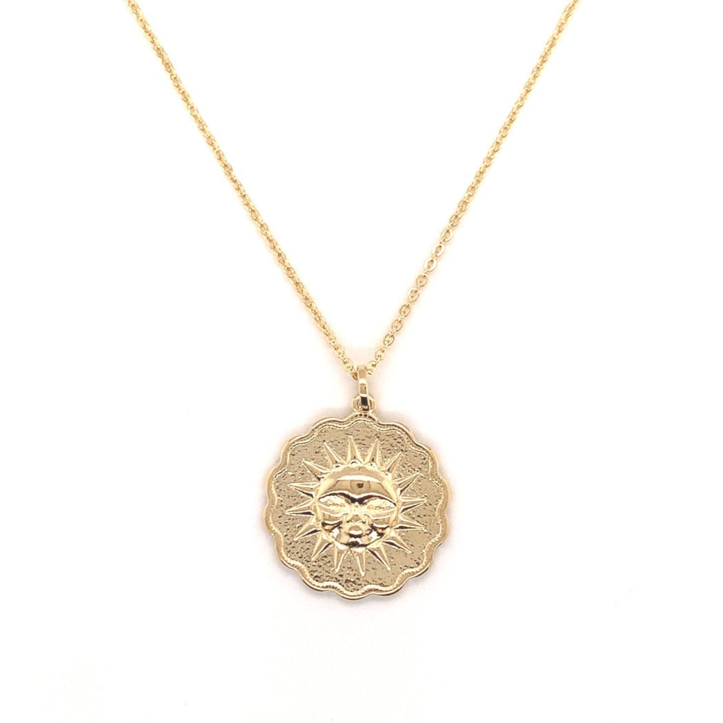 Our sun charm pendant on a dainty gold-filled cable chain is a radiant symbol of positivity and vitality. The necklace showcases a beautifully crafted sun charm, capturing the essence of the sun's energy and warmth.