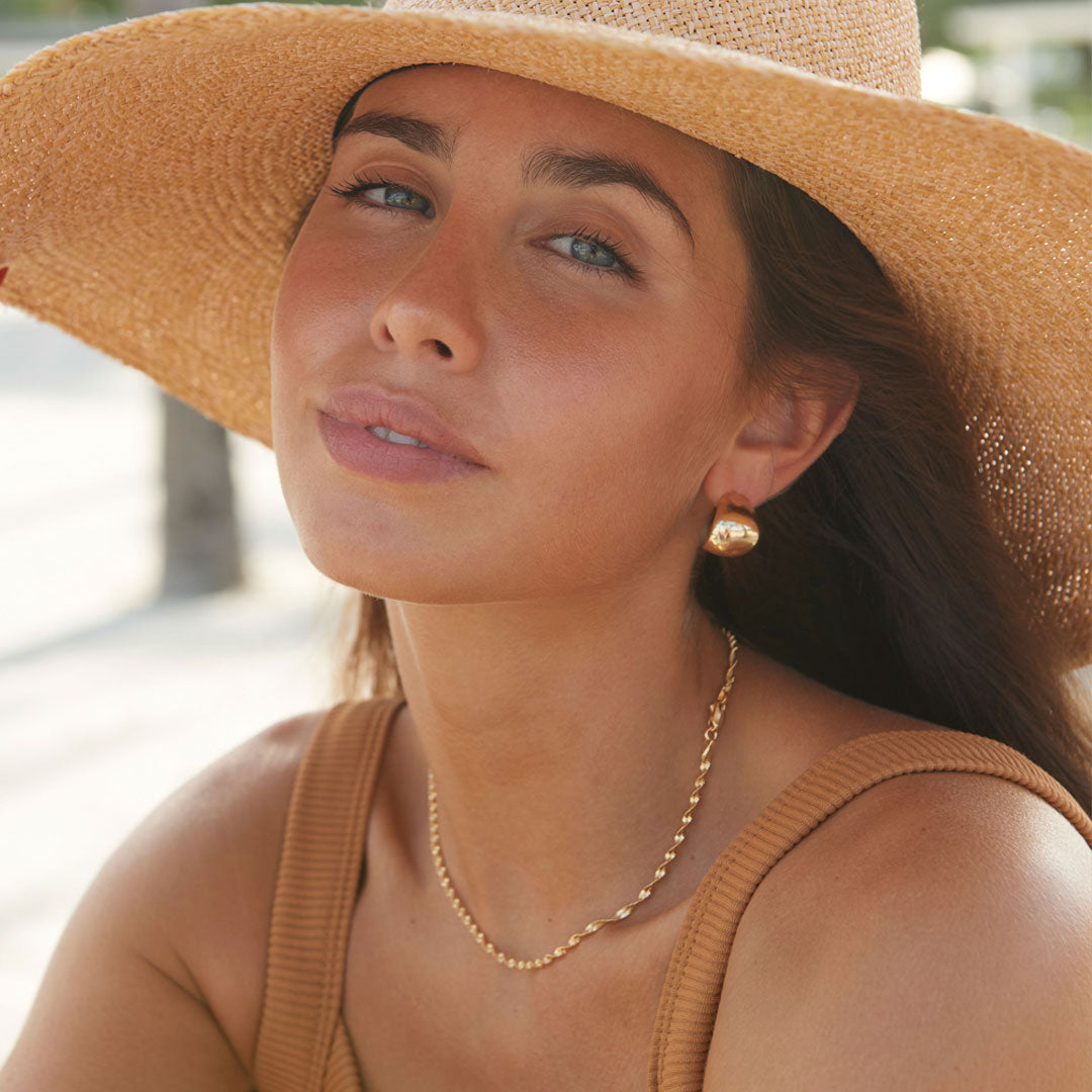 We take extra care in plating our pieces with a layer of gold that is 20 times thicker than the industry standard, and we also apply a protective coating to prevent tarnishing. Following these recommendations will help prolong the life of your jewelry. As a storage tip, keeping them in a plastic bag can help minimize exposure to moisture in the air.