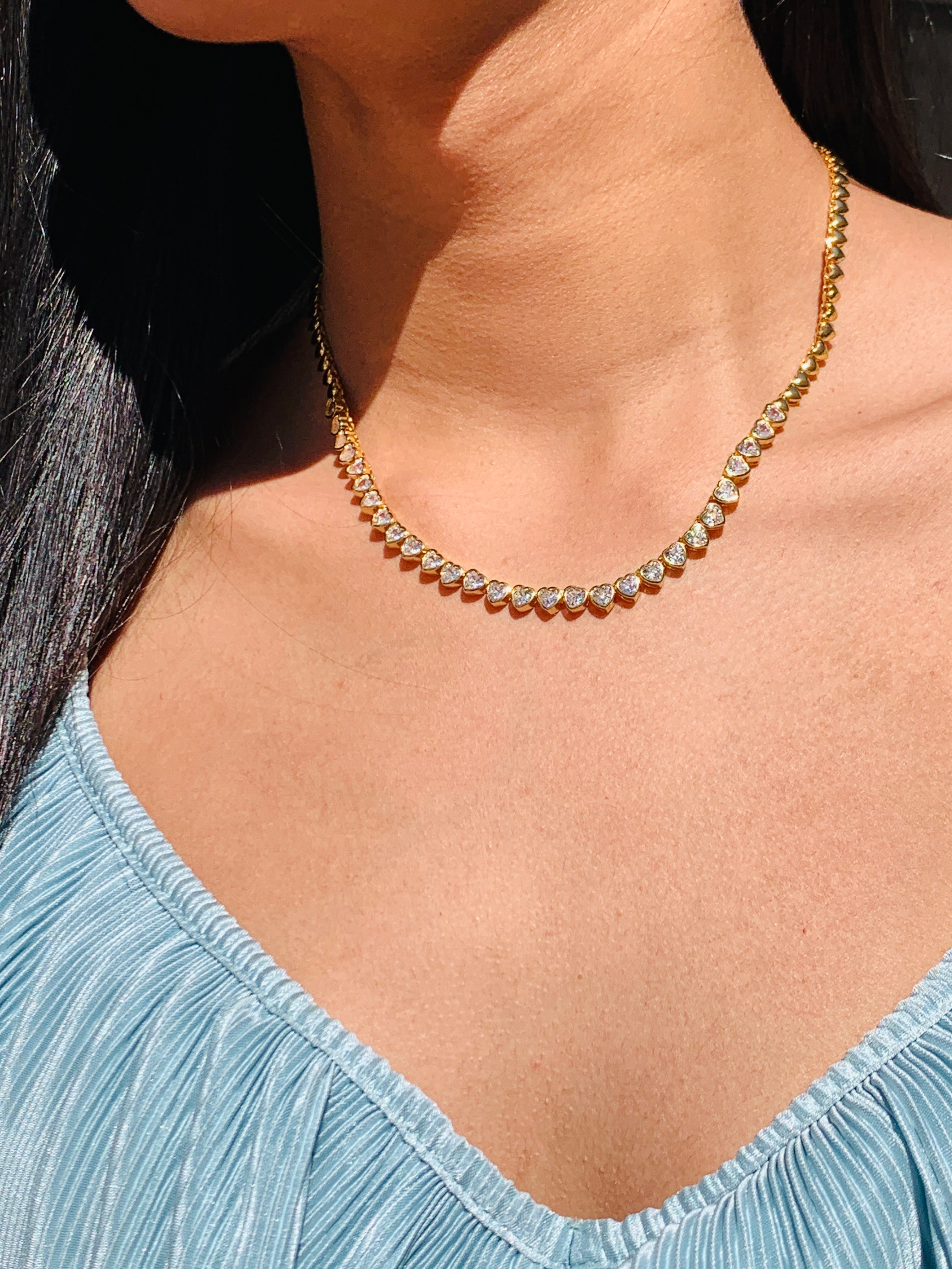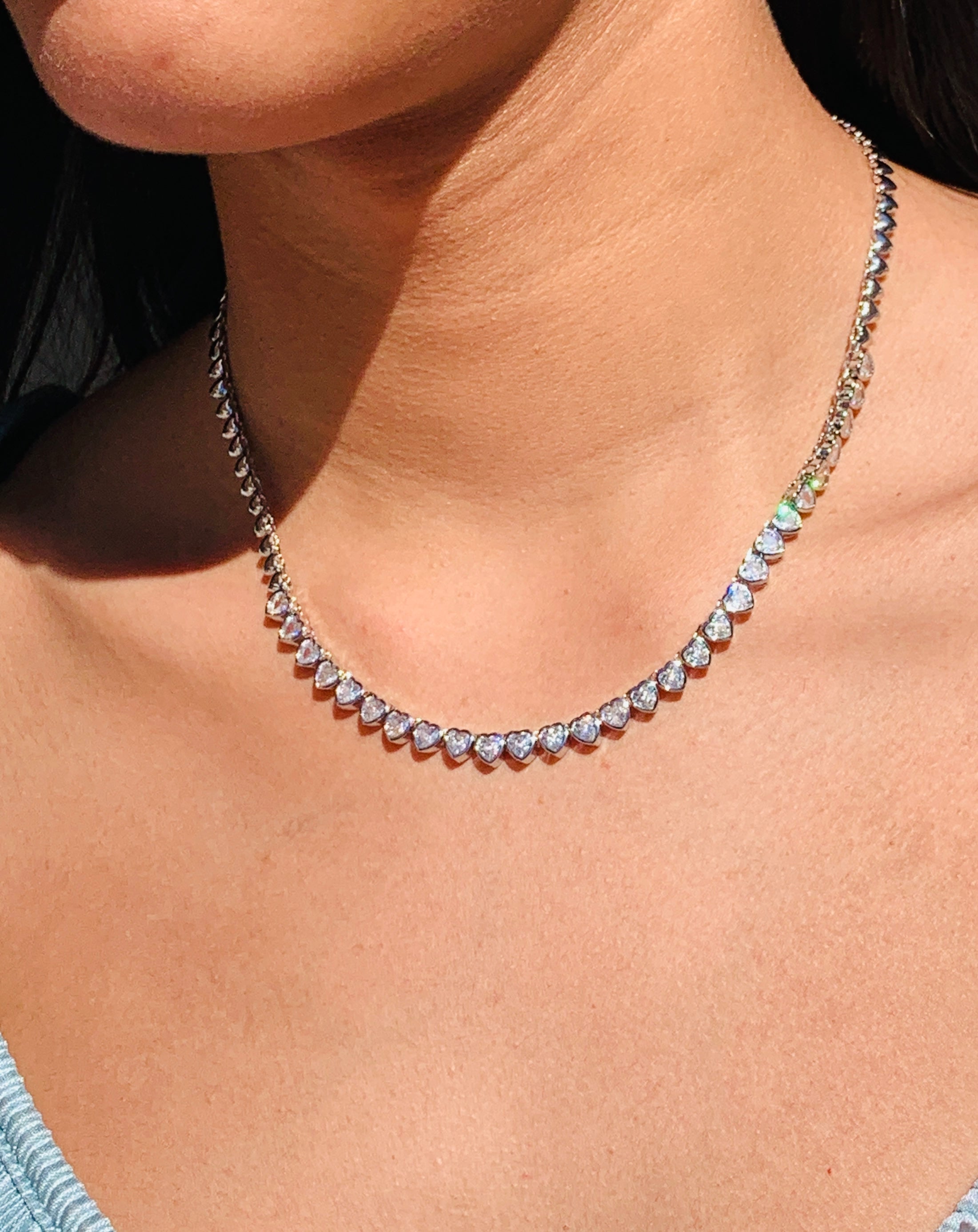 Celebrate love in its purest form with our Heart Tennis Necklace. Designed as a symbol of romance and devotion, this exquisite piece features delicate diamond hearts intertwined with plain hearts, creating a graceful balance of sparkle and simplicity. Whether a gift for someone special or a cherished addition to your own collection, this necklace embodies elegance, sentiment, and timeless beauty.