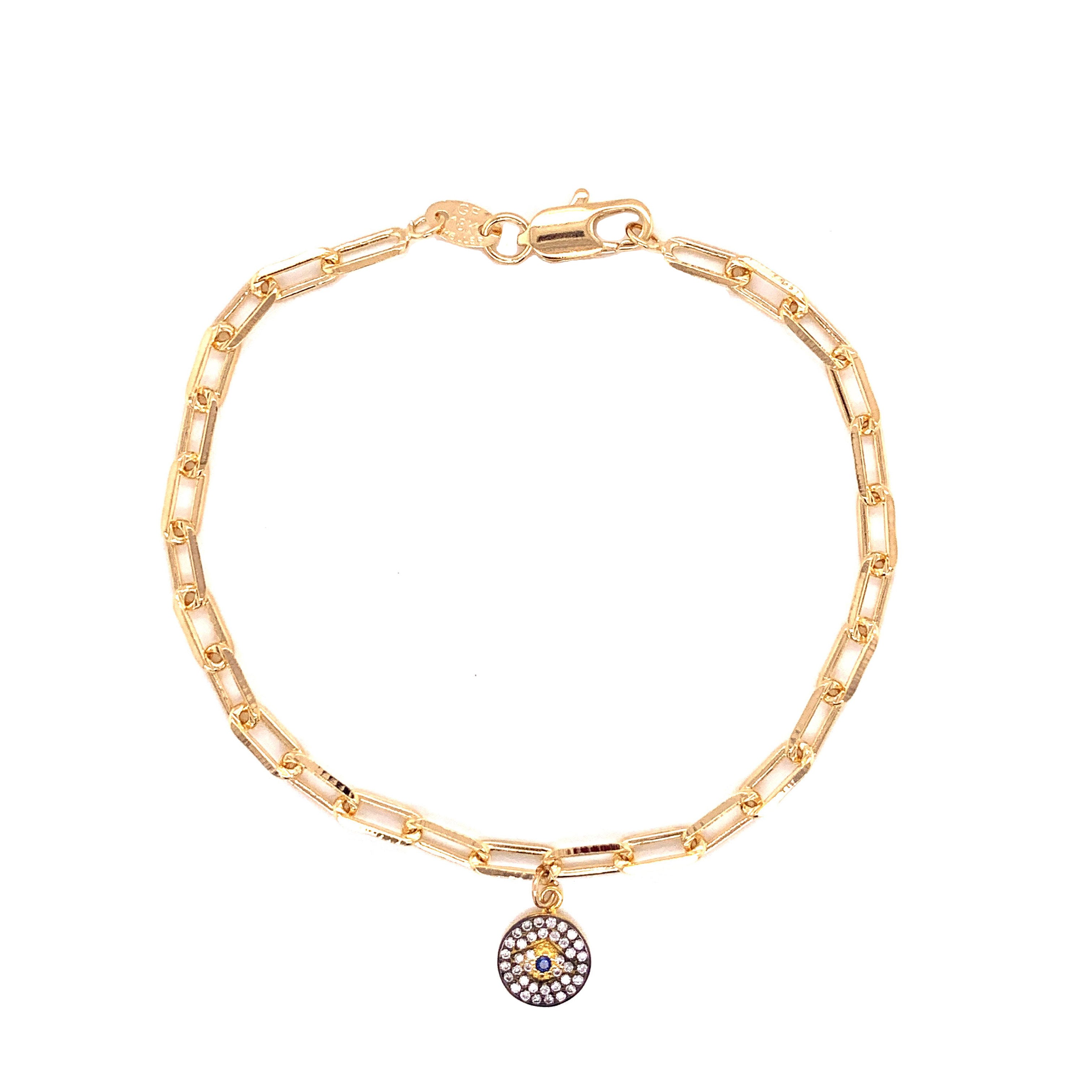 Embrace the power of style and protection with the Desi Gold Filled Paperclip Bracelet with CZ Lucky Eye Charm. Let its captivating beauty and meaningful symbolism inspire you to embrace positivity, attract good fortune, and showcase your unique fashion sense.