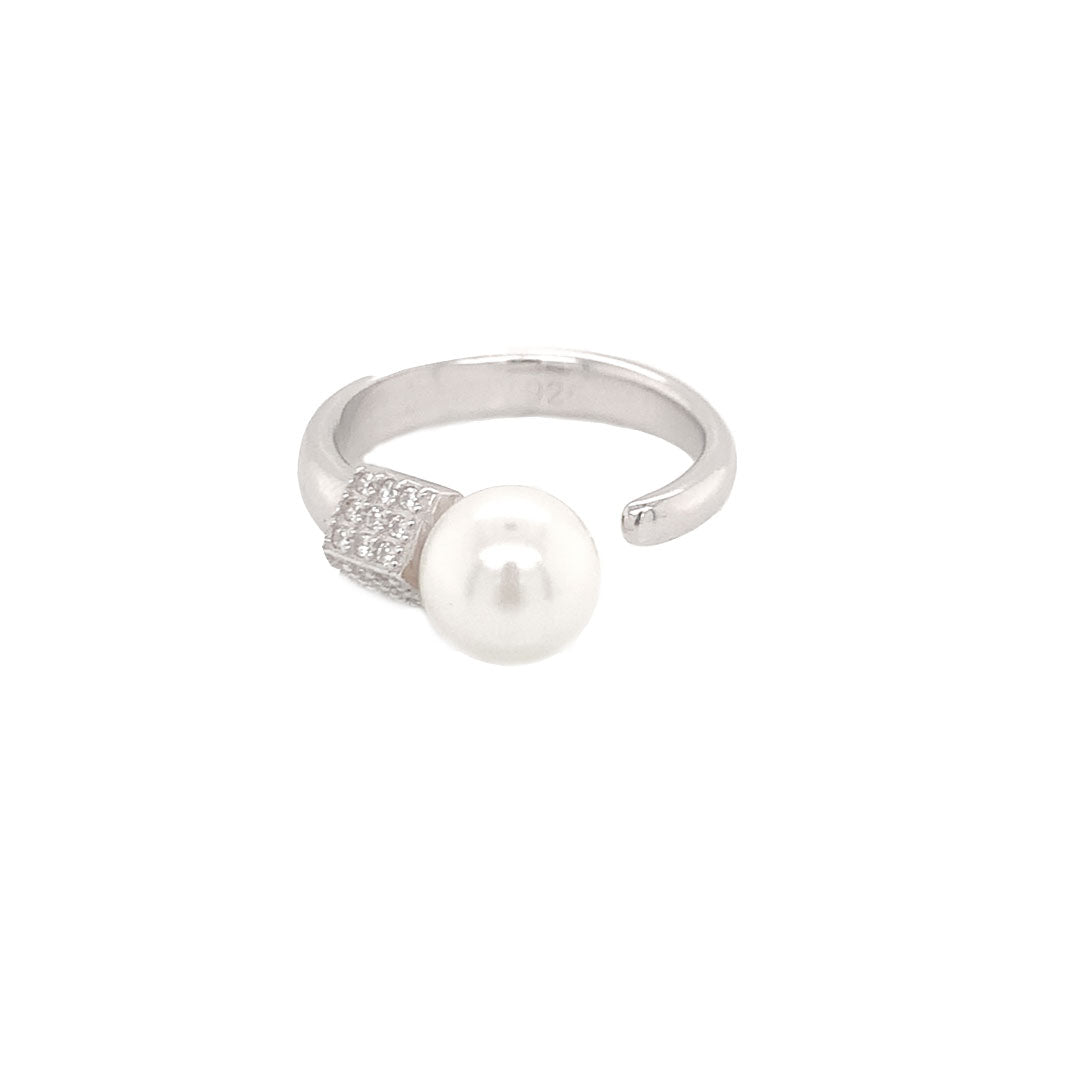 Introducing MaLi's stunning Pearl with CZs Sterling Silver Adjustable Ring, a true embodiment of elegance. This exquisite ring combines the timeless beauty of pearls with the sparkle of CZ stones. The adjustable feature of this ring ensures a comfortable fit for various finger sizes, making it an ideal accessory that effortlessly adds a touch of glam to any ensemble.