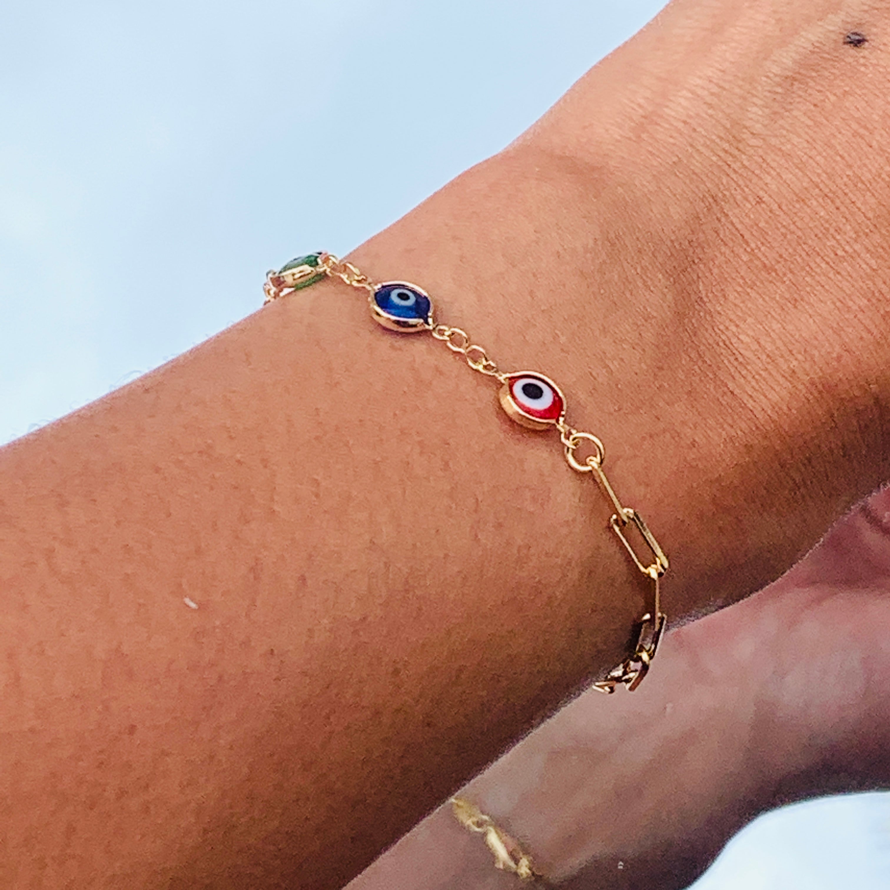 Elle Evil Eye Paperclip Bracelet