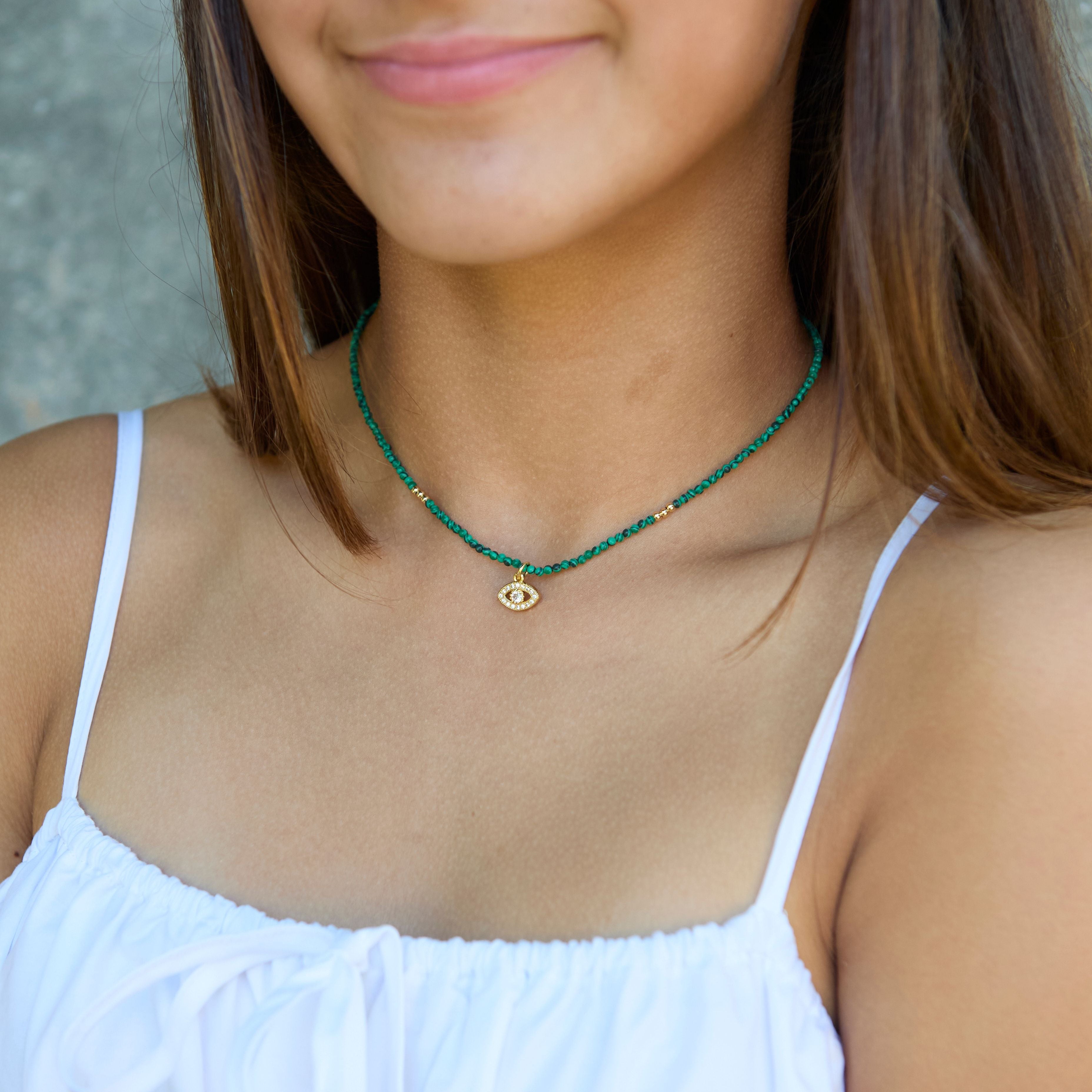 A bold pop of green with a protective twist. Our Elsa Evil Eye Necklace featuring an evil eye pendant is designed for kids and teens who love meaningful style. It’s more than just a pretty piece. It’s a symbol of protection, positivity, and personal power.