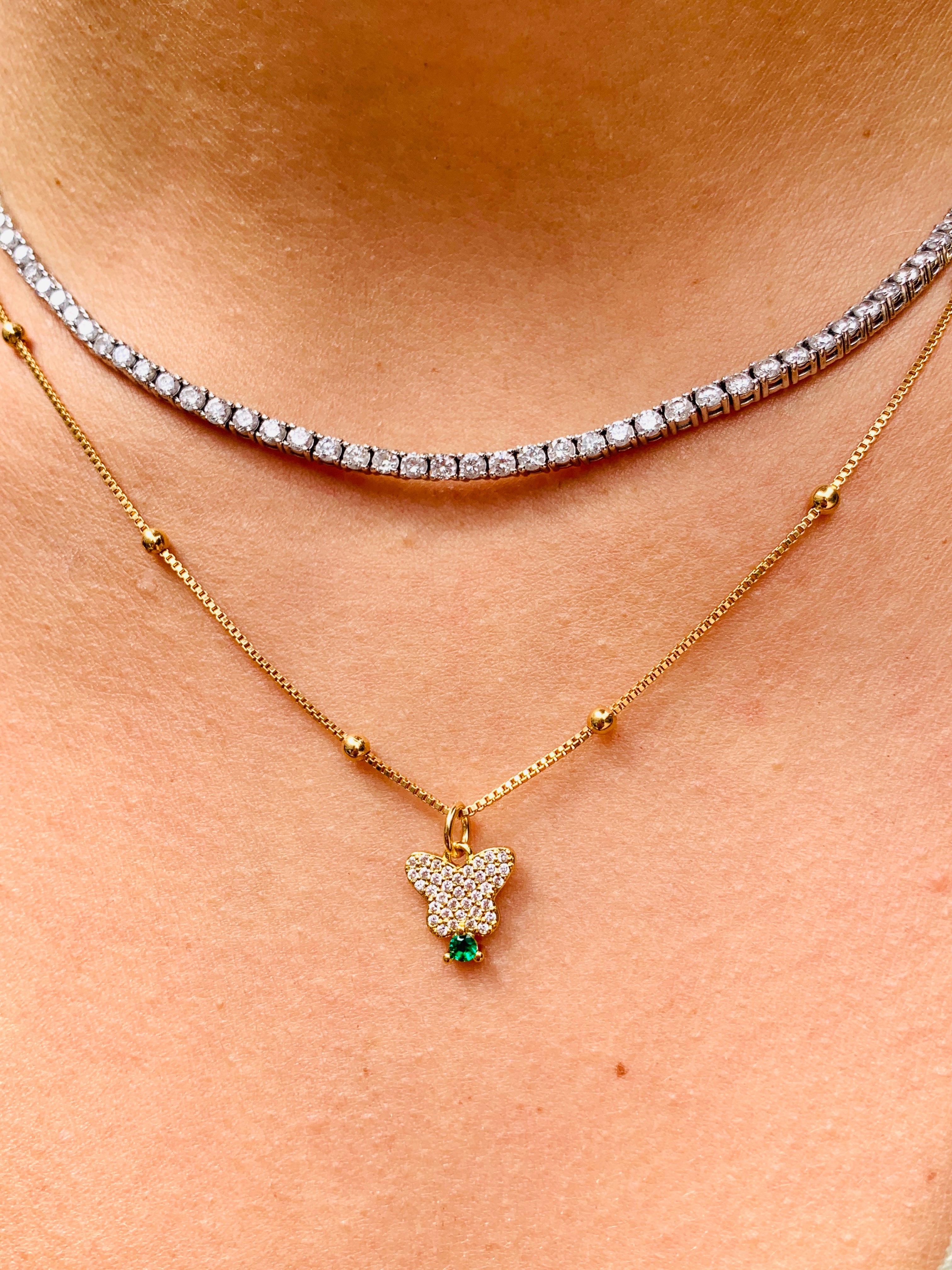 Experience the enchanting beauty of our butterfly charm necklace, a whimsical symbol of elegance and transformation that captures hearts and inspires the spirit. This exquisite piece features a delicate gold-filled box chain, meticulously crafted with a 2mm width for a refined and sophisticated look. The box chain's sleek and squared links create a timeless appeal that complements any style.
