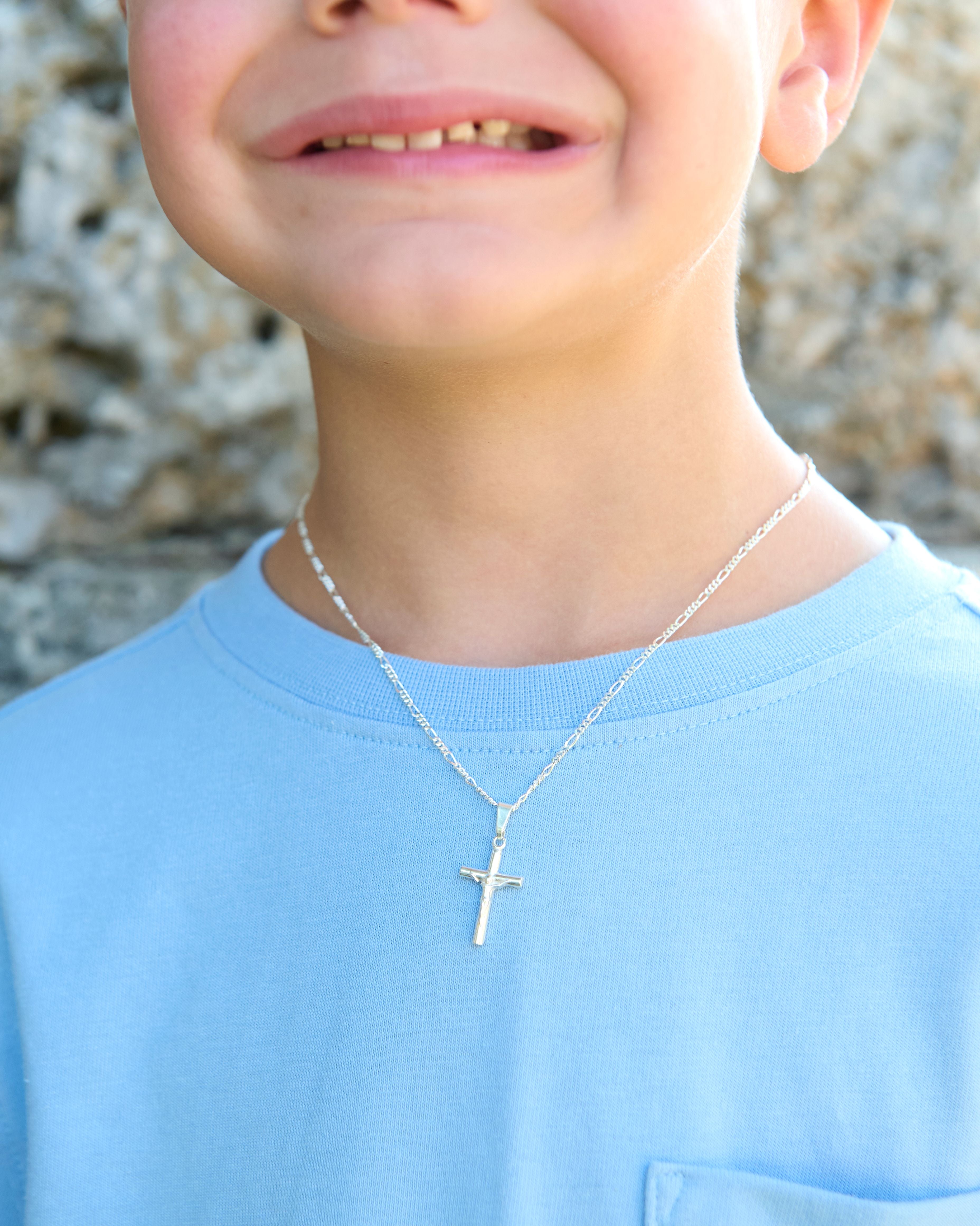 Our Even Crucifix Necklace for boys is perfect for baptisms, first communions, confirmations, or as a meaningful keepsake from a loved one.