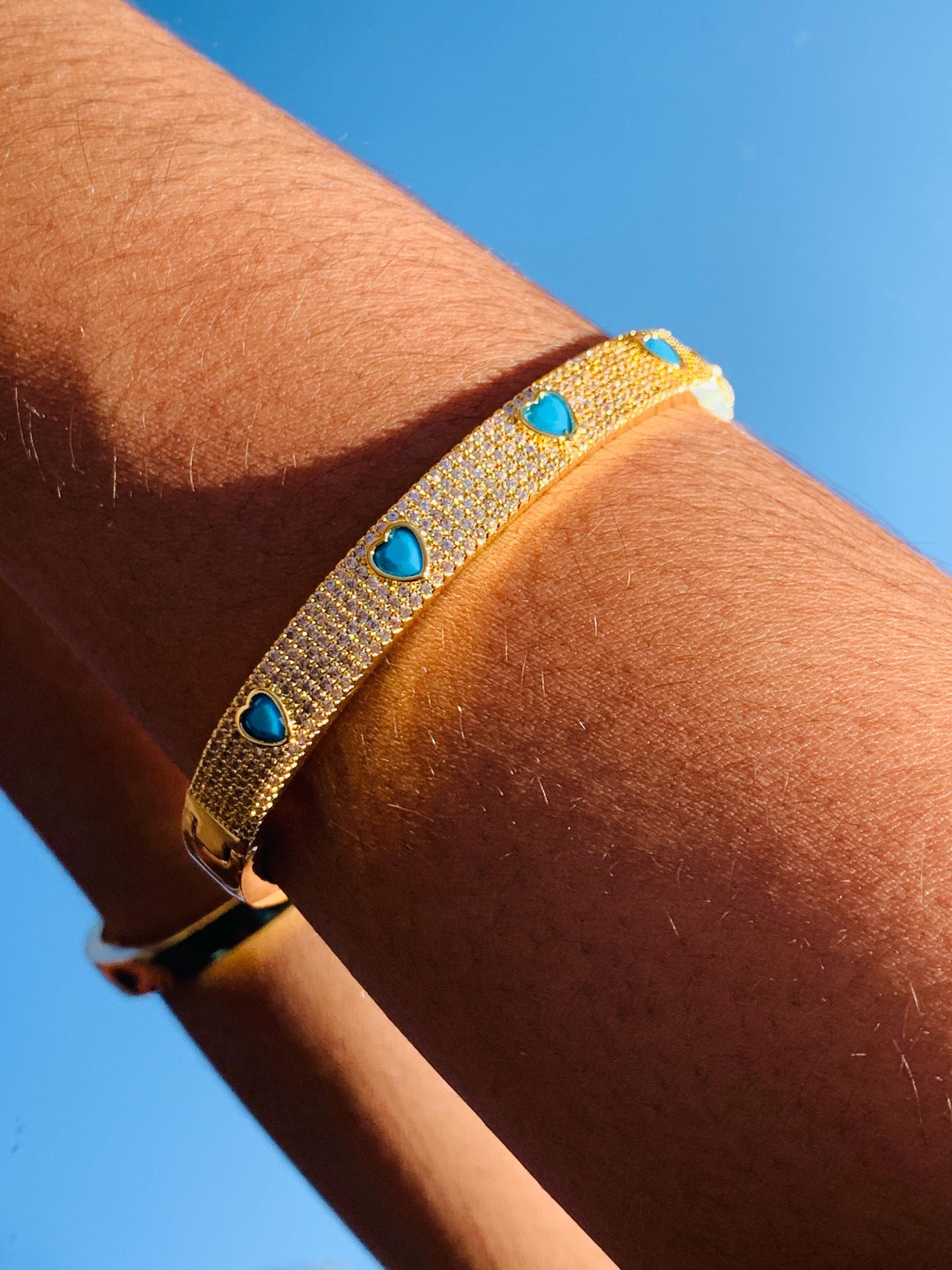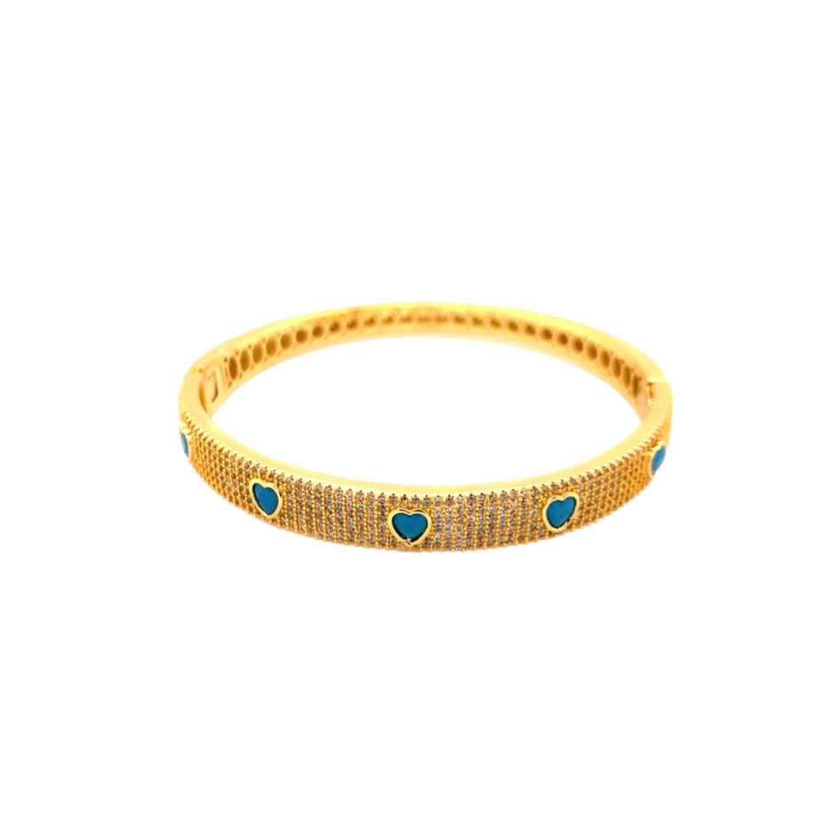Heart Gold Plated Bangle Bracelet is a stunning piece that blends elegance with charm. Designed with a captivating heart centerpiece adorned with sparkling CZ stones, this bracelet adds a touch of sophistication and brilliance to any look.