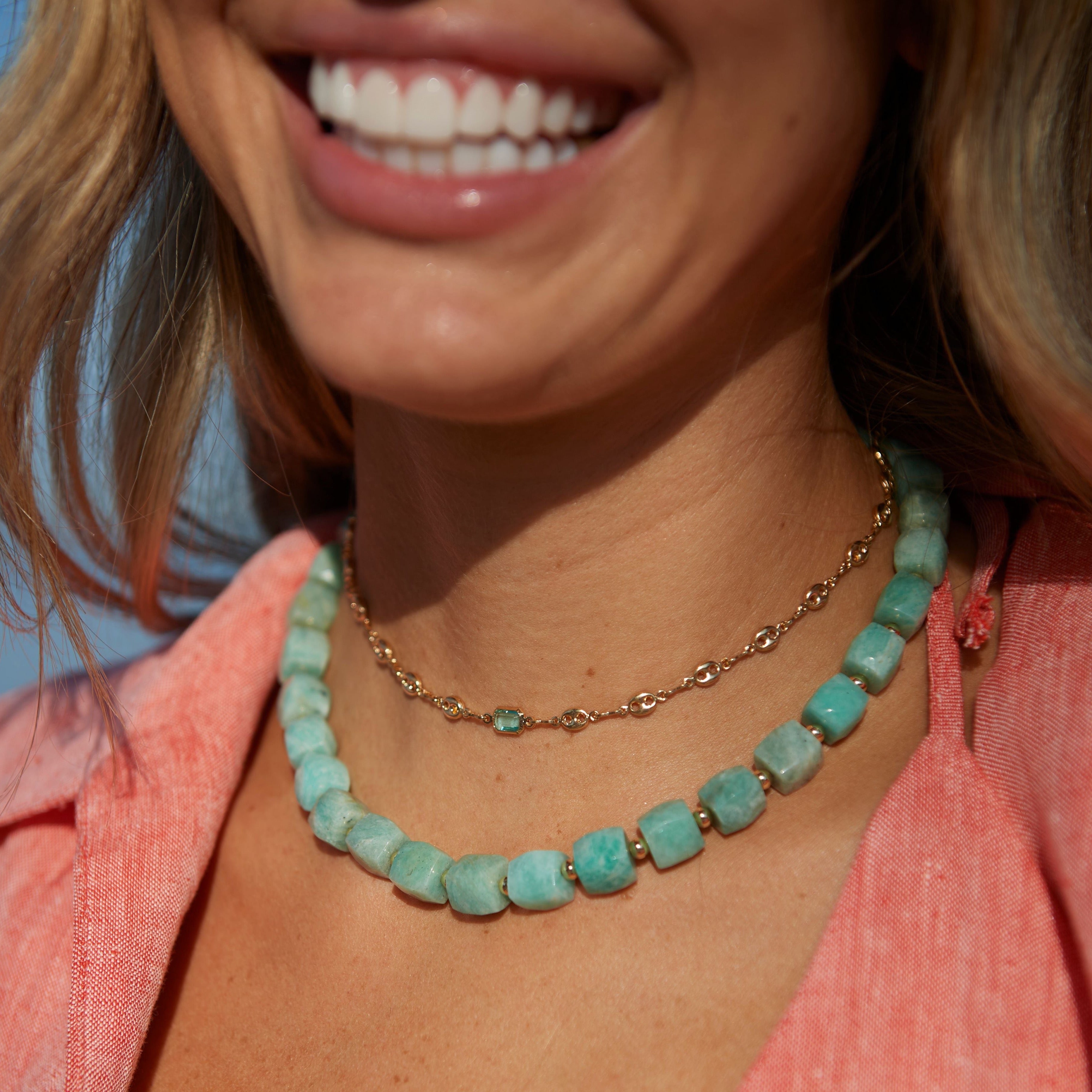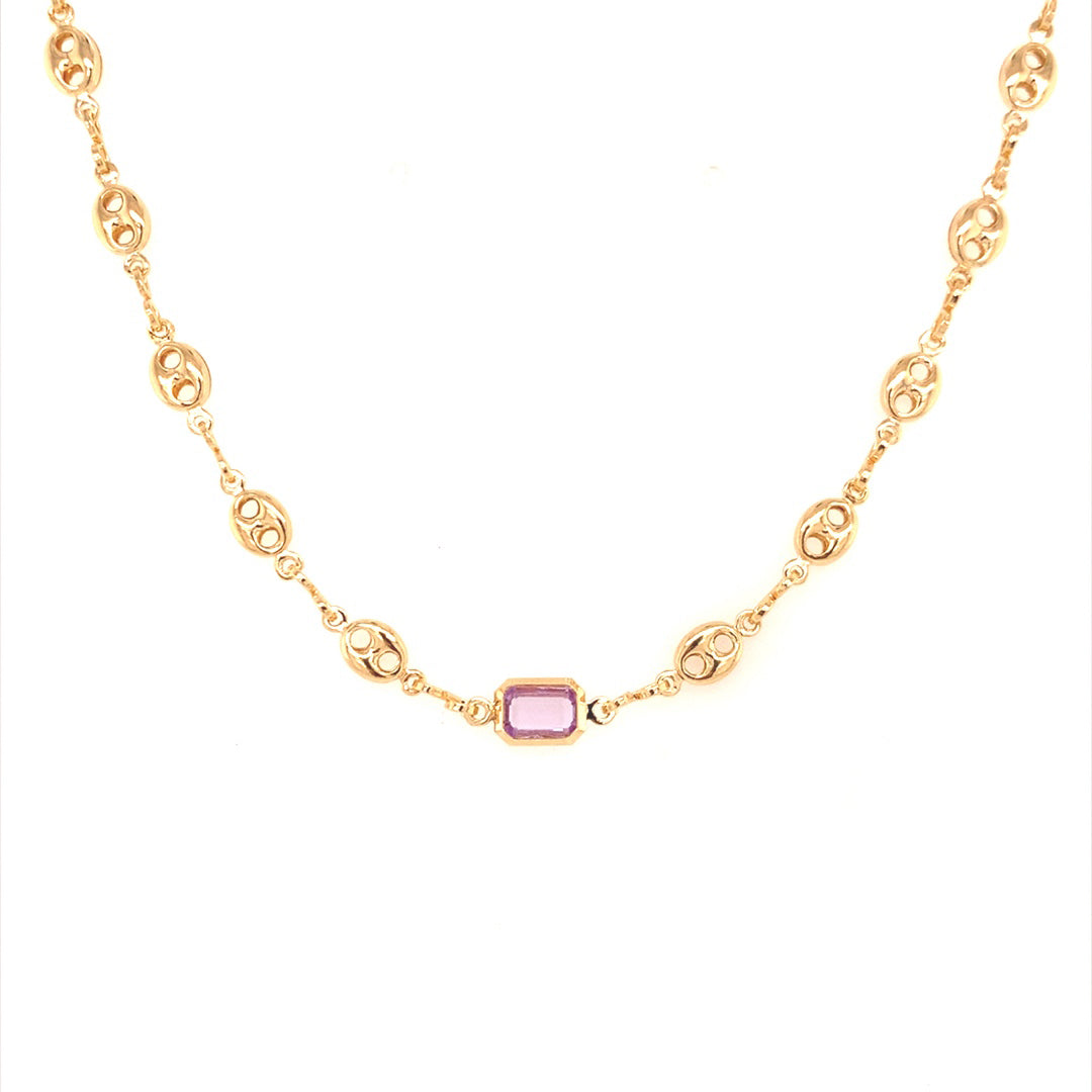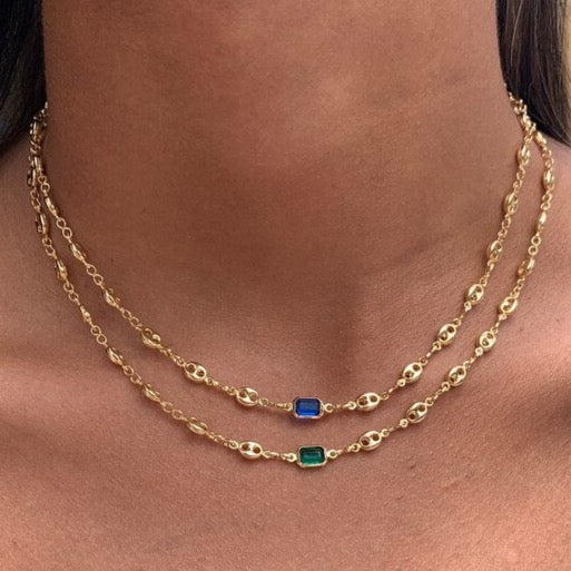 Indulge in vibrant beauty with our Gold-Filled Color Gemstone Puff Necklace, a stunning blend of bold design and radiant color. Featuring the timeless appeal of a mariner puff chain, this piece is elevated by a striking center gemstone, carefully chosen for its rich, captivating hue. The perfect balance of sophistication and personality, this necklace adds a playful yet elegant touch to any look.