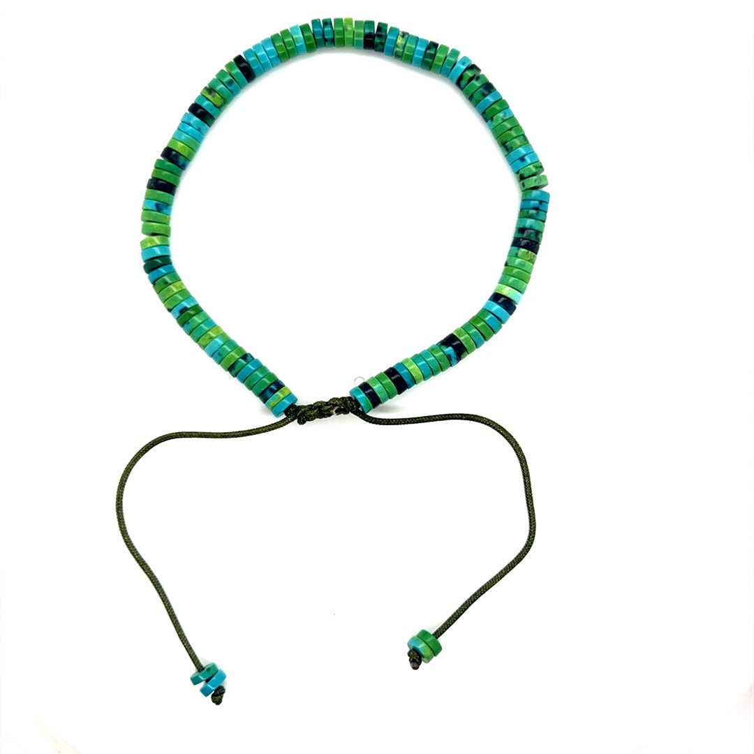 Experience the rugged charm of our Green Stone Macrame Bracelet, a perfect blend of strength and style. This unique bracelet features durable macrame knots combined with mixed gemstones, creating a bold yet refined accessory. Ideal for everyday wear, it's perfect for adding a touch of individuality to any outfit, whether you're at the beach, a casual outing, or looking to add a rugged accent to your wardrobe.