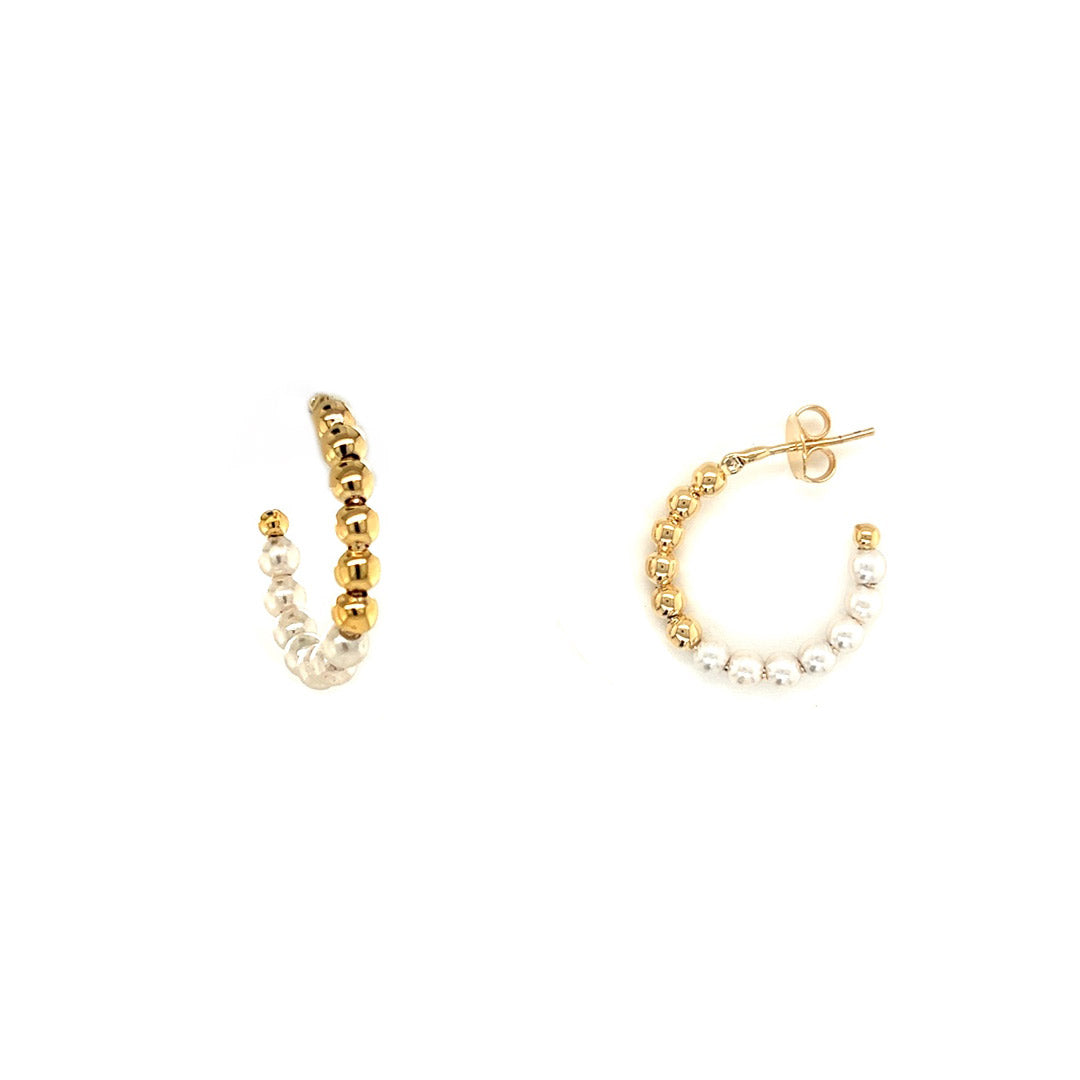Discover an elegant balance of timeless and modern with our Jani Half Pearl x Gold Filled Beaded Hoops. Designed to blend the soft luster of pearls with the radiant warmth of gold beads, these 25mm hoops make a distinctive statement that complements both casual and elevated looks.