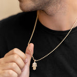 Our Gold-Filled men's Hamsa Hand Necklace is worn as a sign of protection, spirituality, and a connection to tradition and heritage. It is believed to guard the wearer from negative energies and bring good luck and positive energy into their life.