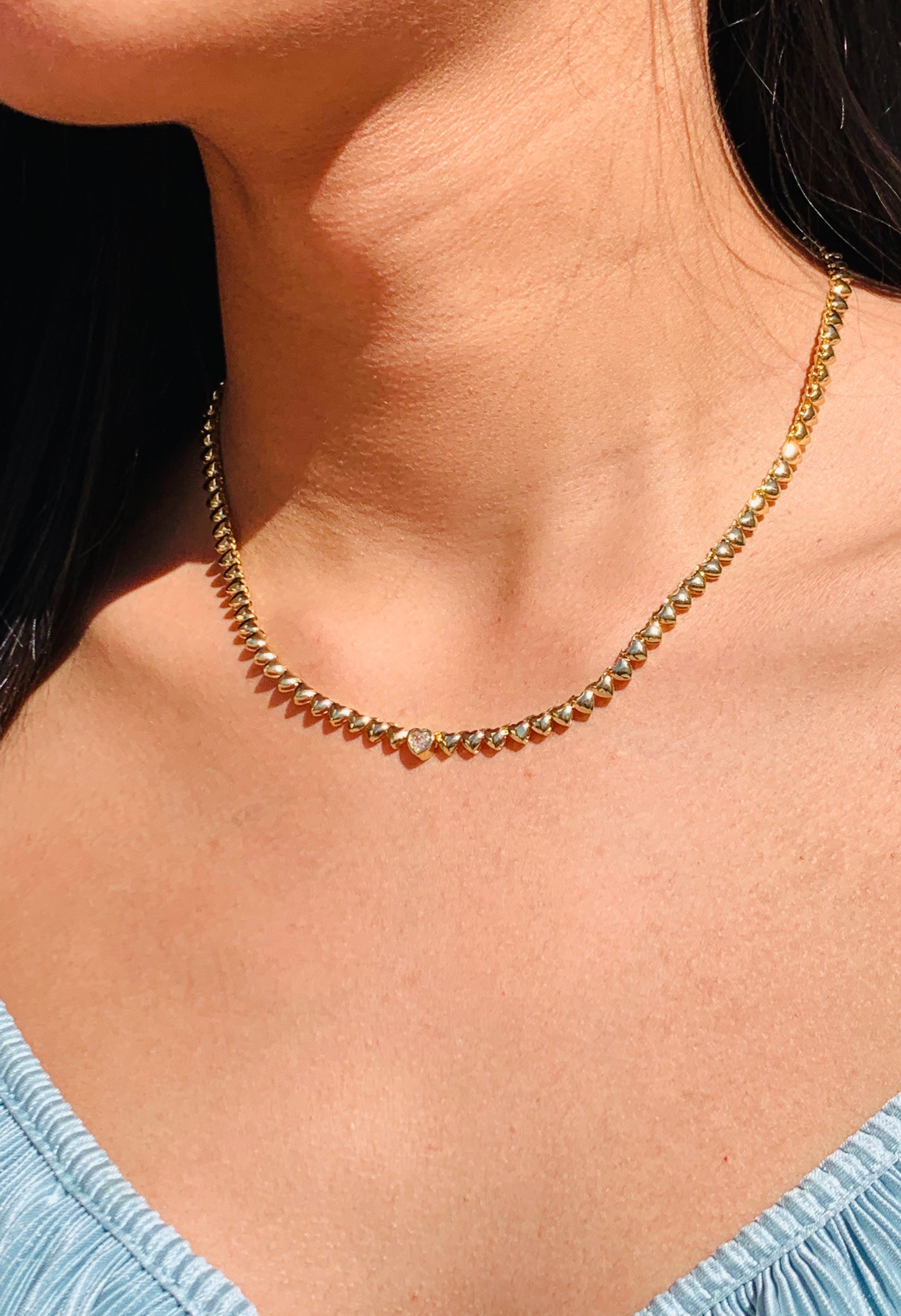 Celebrate love in its most radiant form with our Heart Tennis Necklace. This exquisite piece is a symbol of romance and devotion, featuring a seamless blend of delicate diamond hearts and plain hearts. Elegant yet meaningful, it’s the perfect way to add a touch of grace and sentiment to any look.
