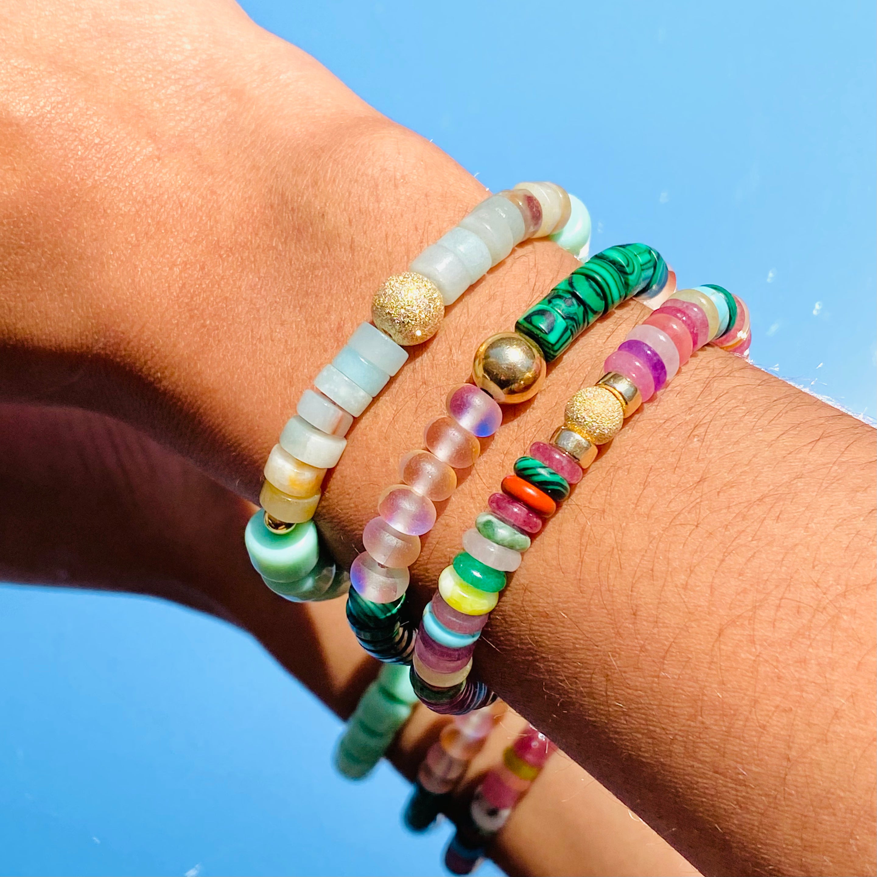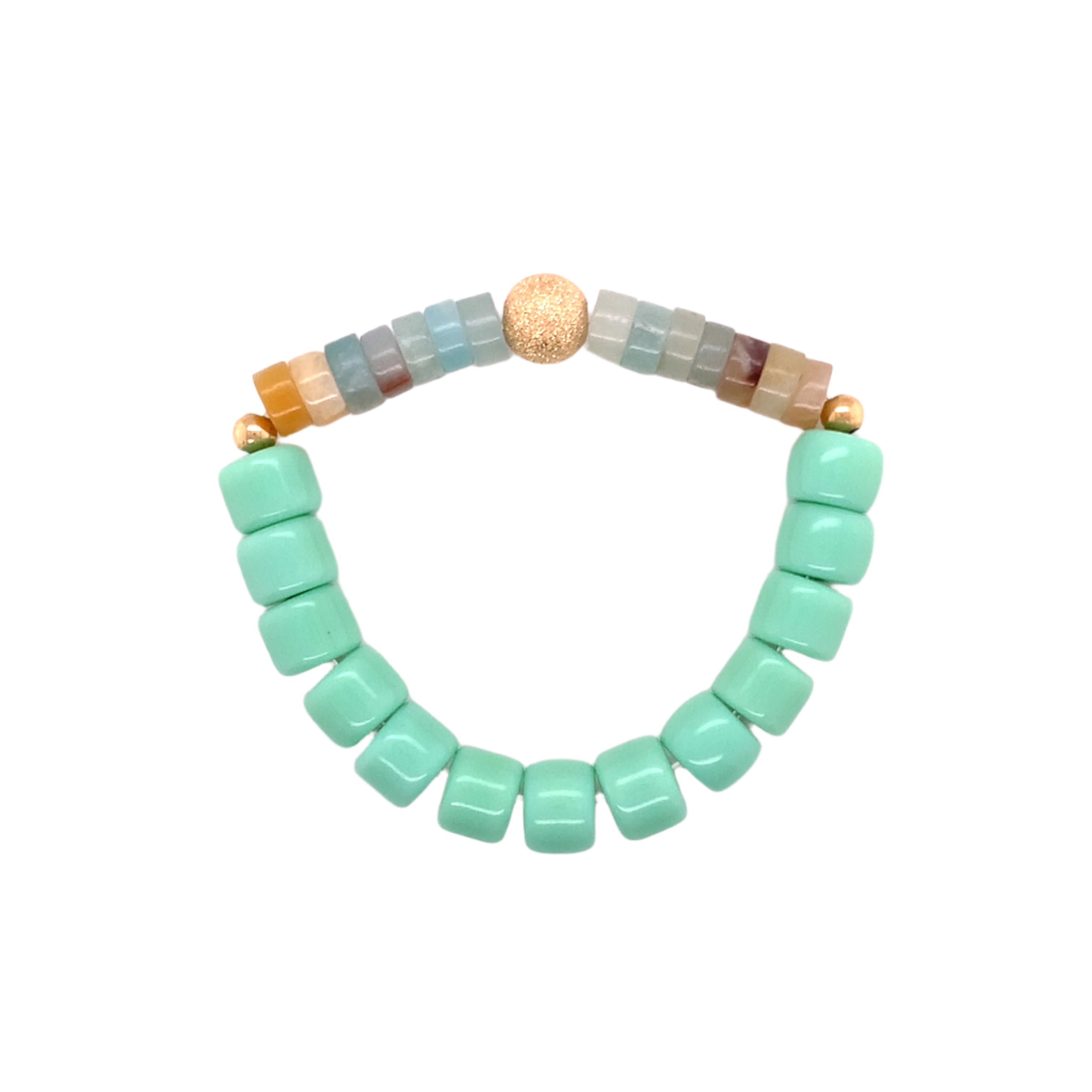 Embrace tranquility and beauty with our Indie Bracelet. Featuring soft blue and light aqua hues, this bracelet is a serene reminder of nature’s calming energy. The smooth, polished amazonite gemstones are known for their soothing properties, helping to promote inner peace and balance.