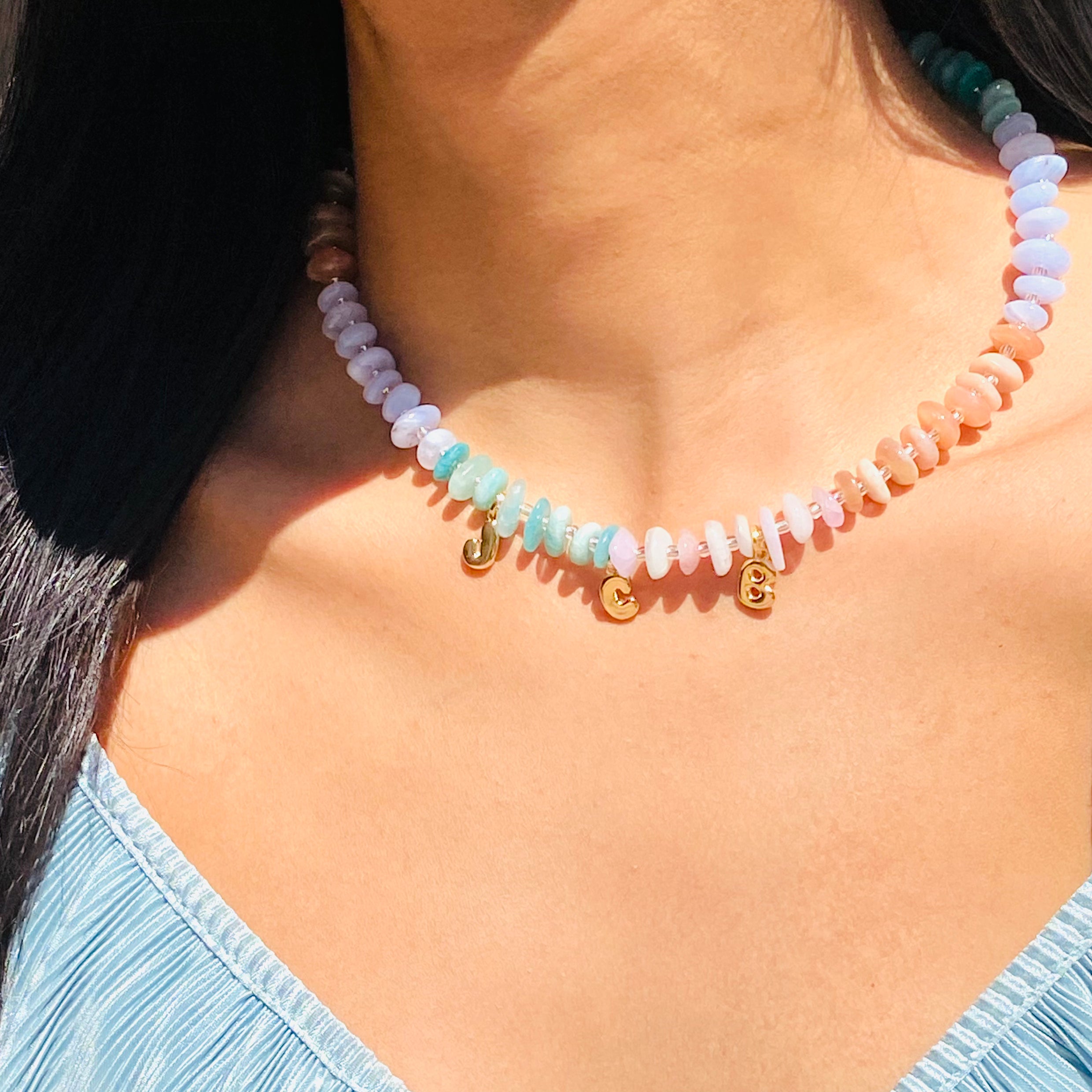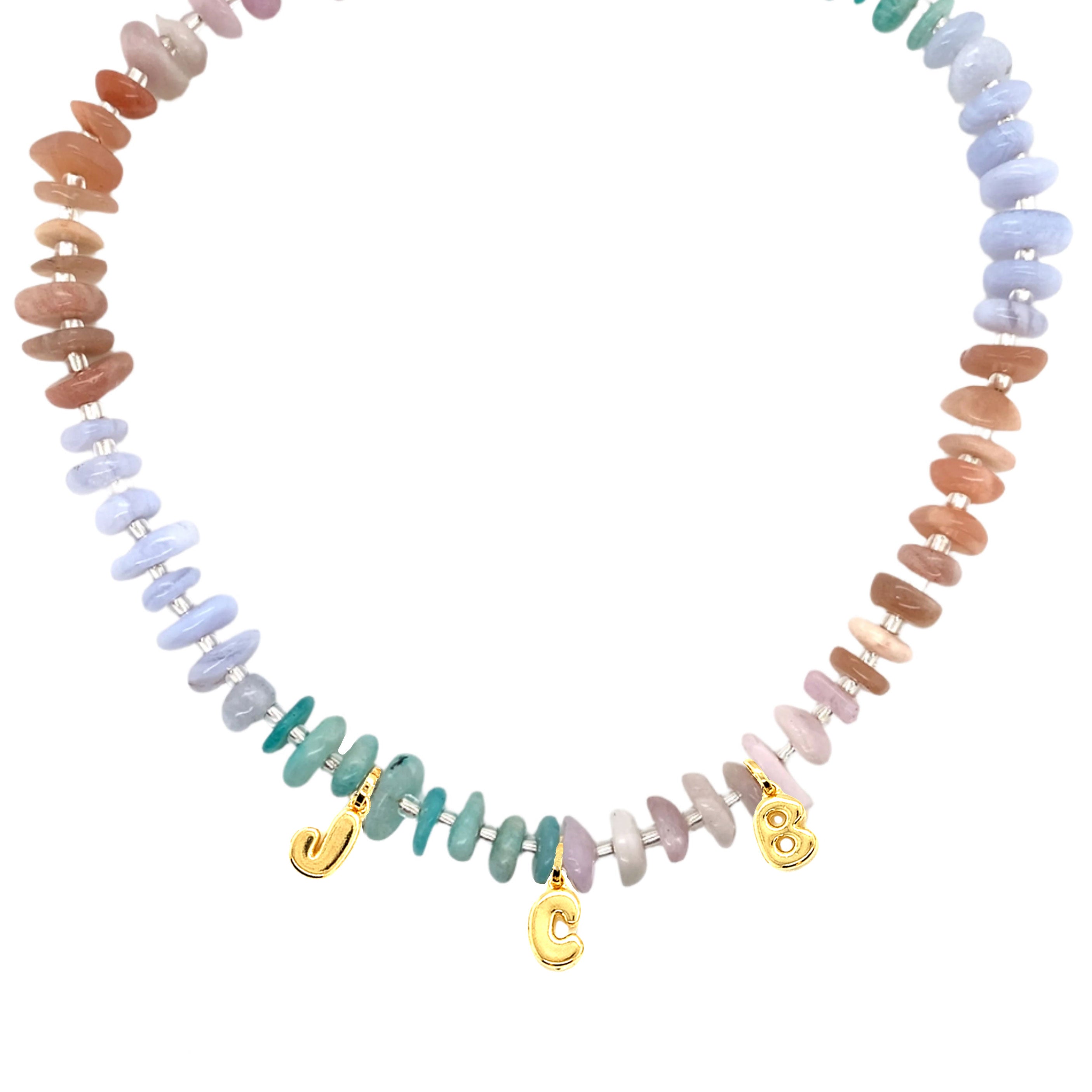 Carry the love of your little ones close to your heart with our Natural Gemstone Necklace featuring their personalized initials. This beautiful necklace combines the vibrant, earthy energy of natural gemstones with sleek, custom initials to create a one-of-a-kind, sentimental piece. Each gemstone is handpicked for its unique beauty and energy, making this a thoughtful and meaningful gift for mothers, grandmothers, or anyone who wants to keep their children’s love close.