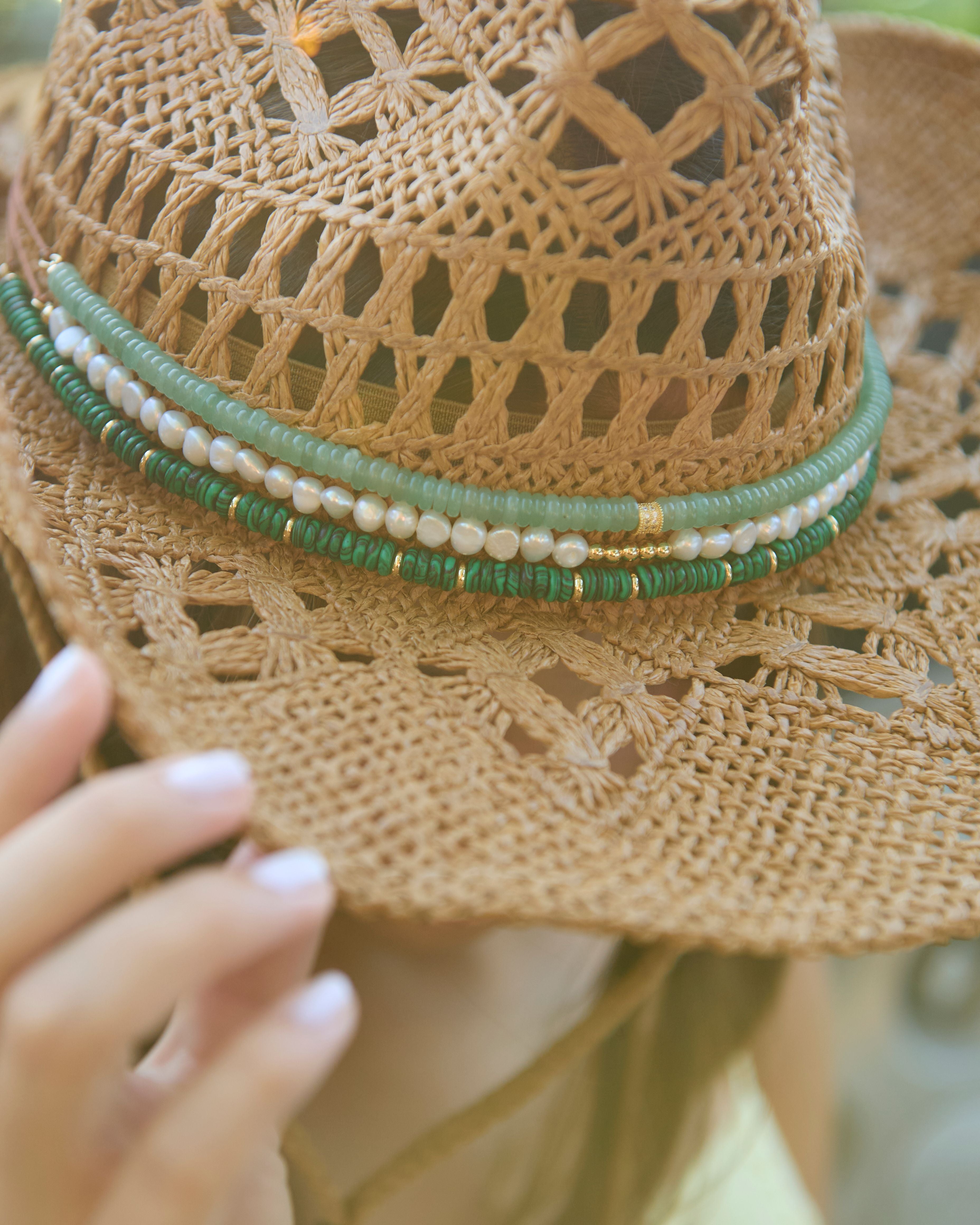 The Jade light green Hat Band serves as the ultimate accessory, effortlessly transitioning from a chic hat band to a stylish necklace. It offers the freedom to express your unique style in multiple ways – whether you're dressing up your favorite cowgirl hat, adding flair to your fedora, or wearing it as a necklace. The Jade band lets you showcase your creativity and explore countless fashion options. Embrace the freedom to mix, match, and layer up with this versatile accessory.