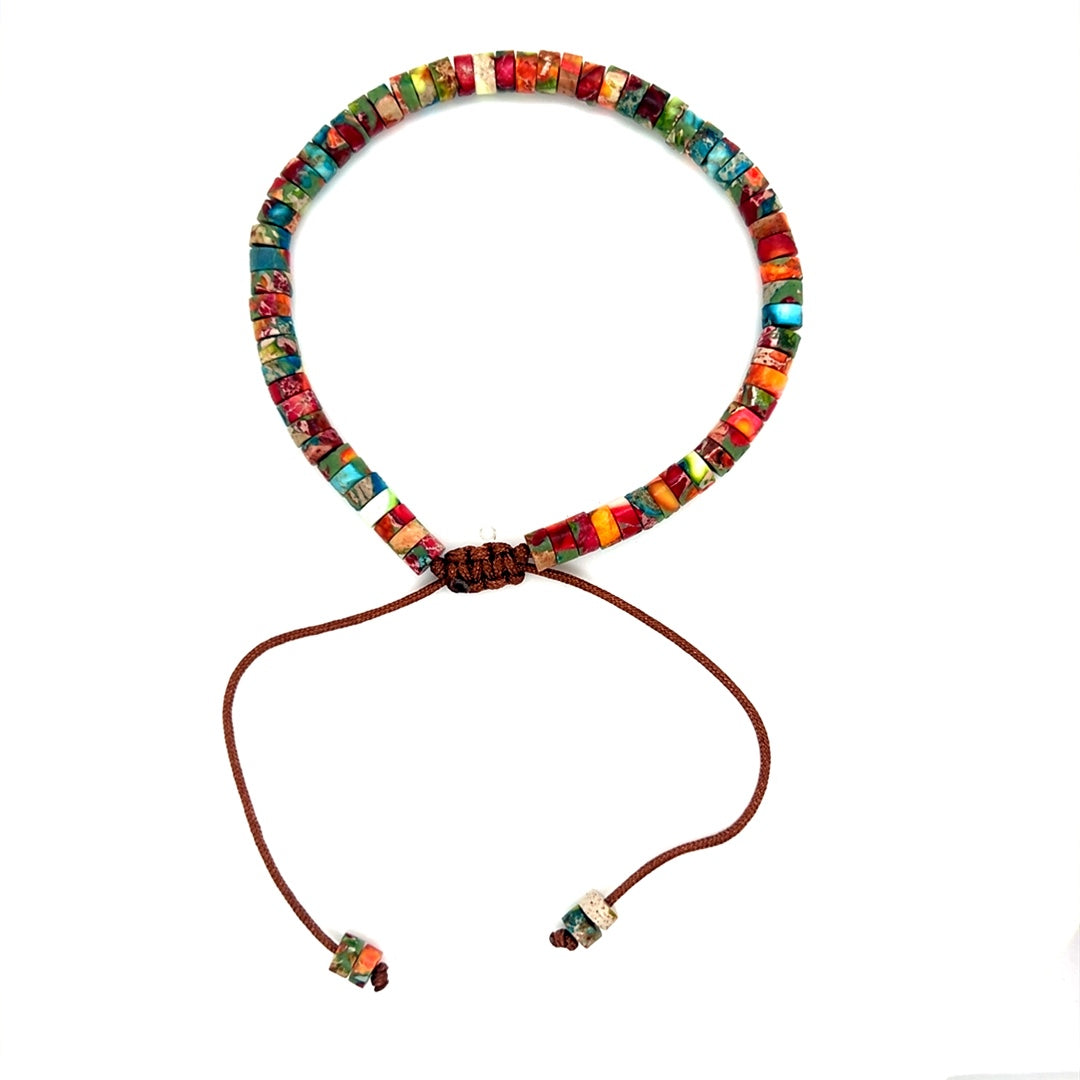 Experience the rugged charm of our Jasper Macrame Bracelet, a perfect blend of strength and style. This unique bracelet features durable macrame knots combined with mixed gemstones, creating a bold yet refined accessory. Ideal for everyday wear, it's perfect for adding a touch of individuality to any outfit, whether you're at the beach, a casual outing, or looking to add a rugged accent to your wardrobe.