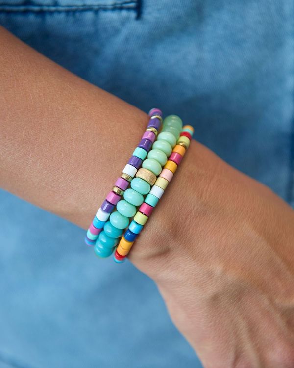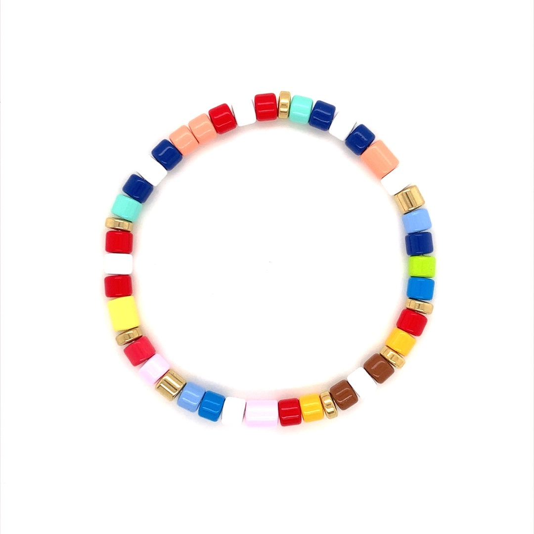 Brighten your wrist with the playful charm of our Jina Disc Bracelet. Designed with multicolor enamel tube beads, it brings a burst of energy and fun to your everyday style. Its vibrant hues make it the perfect piece to wear alone for a soft pop of color or stacked for a bold, fashion-forward look.