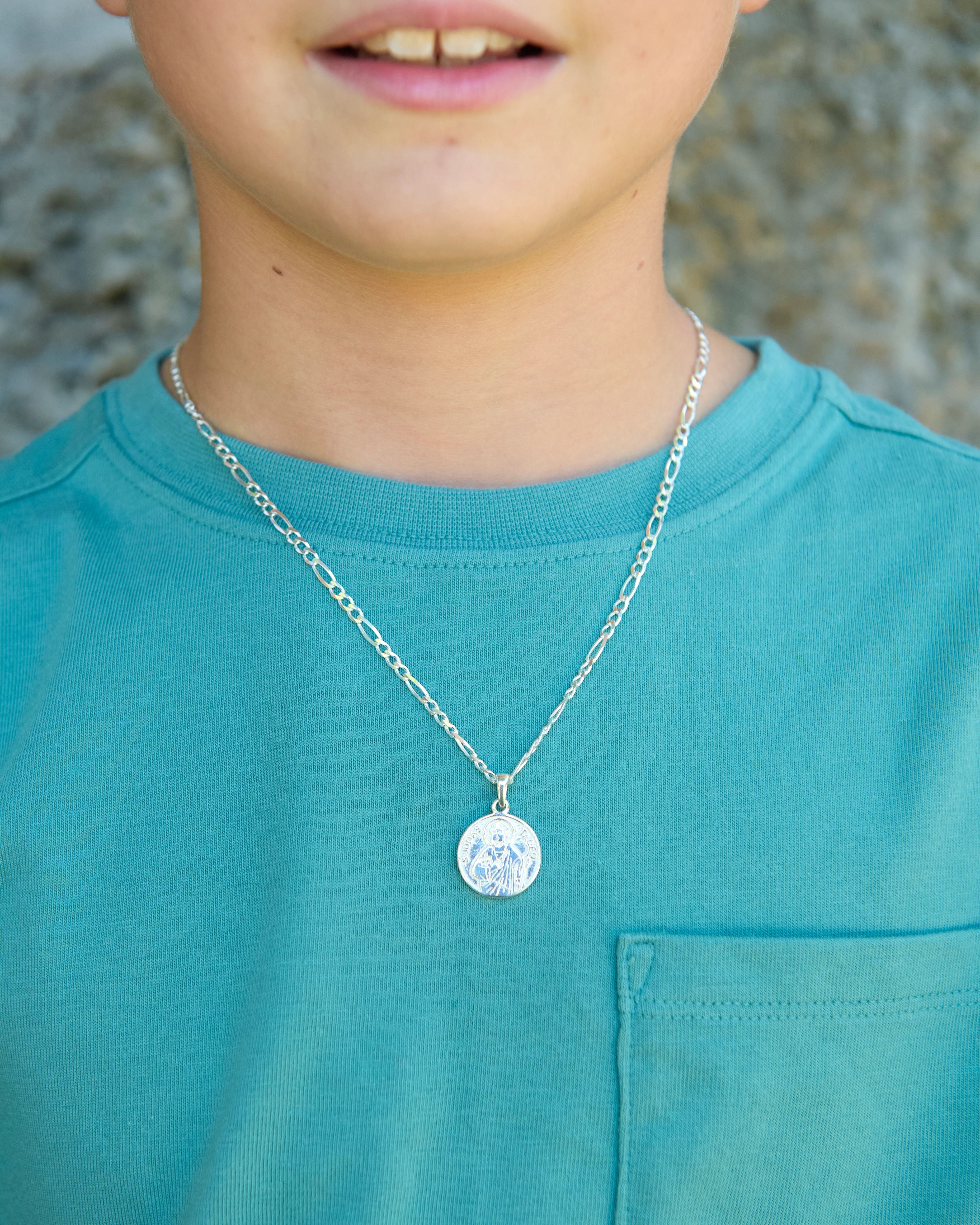 A powerful symbol of faith and perseverance, our Saint Saint Jude Necklace is a heartfelt piece designed for little ones. Made in sterling silver, it offers a gentle reminder that they are never alone—especially in moments that call for courage and hope.
