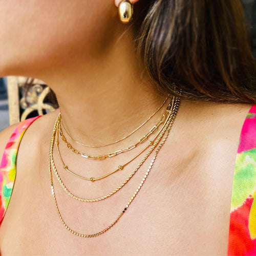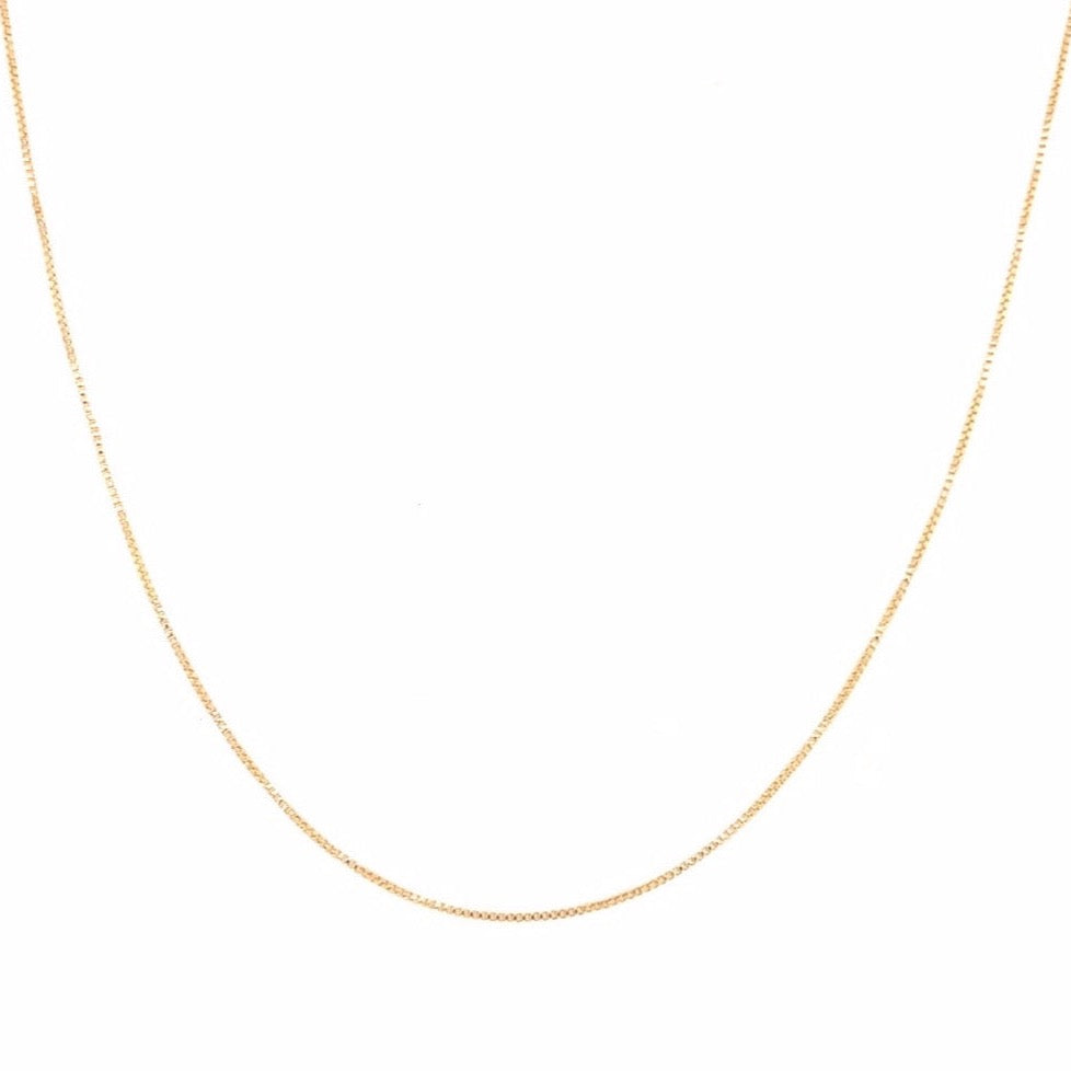 Discover the understated beauty of our Gold-Filled Dainty Box Chain, a piece designed for those who appreciate refined simplicity. With its slender, meticulously crafted links, this chain offers a touch of subtle sophistication that shines whether worn alone or layered for a personalized look.