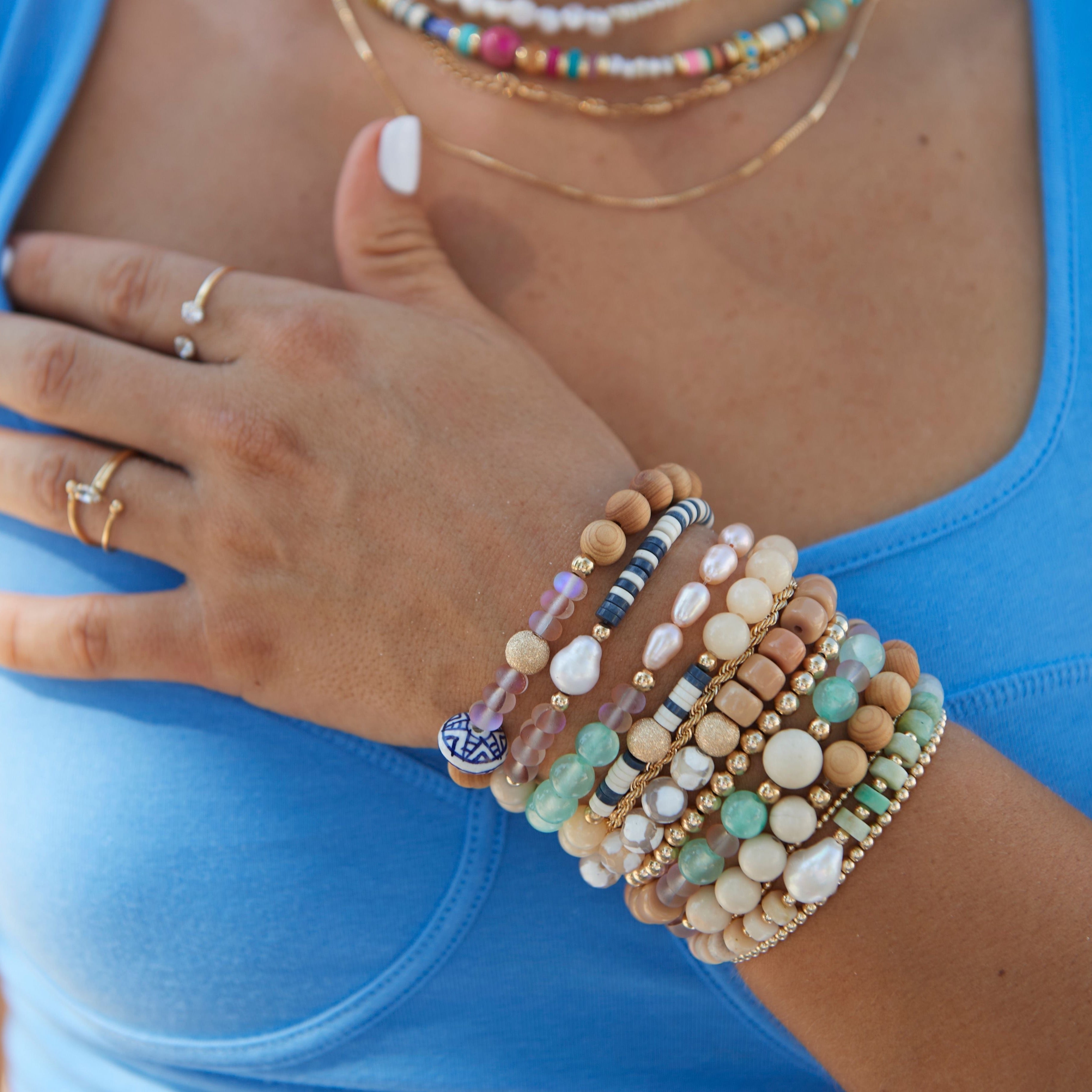 The Kate Beaded Bracelet is a joyful symphony of soft, dreamy hues that dance around your wrist. The delicate beads create a whimsical palette that's both soothing and captivating.