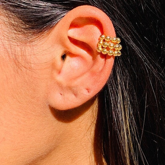Enhance your style with the Kori Gold Beaded Ear Cuff, a piece designed to blend subtle sophistication with a bold edge. Its polished gold-filled finish and beaded detailing create a refined look that hugs the ear comfortably while making a statement.