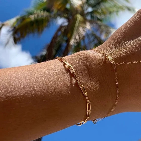 Make a statement with our Gold Filled Dainty Paper Clip Bracelet, a captivating piece that merges simplicity with sophistication. Inspired by the classic paperclip, this delicate bracelet offers a playful yet elegant touch to any ensemble.