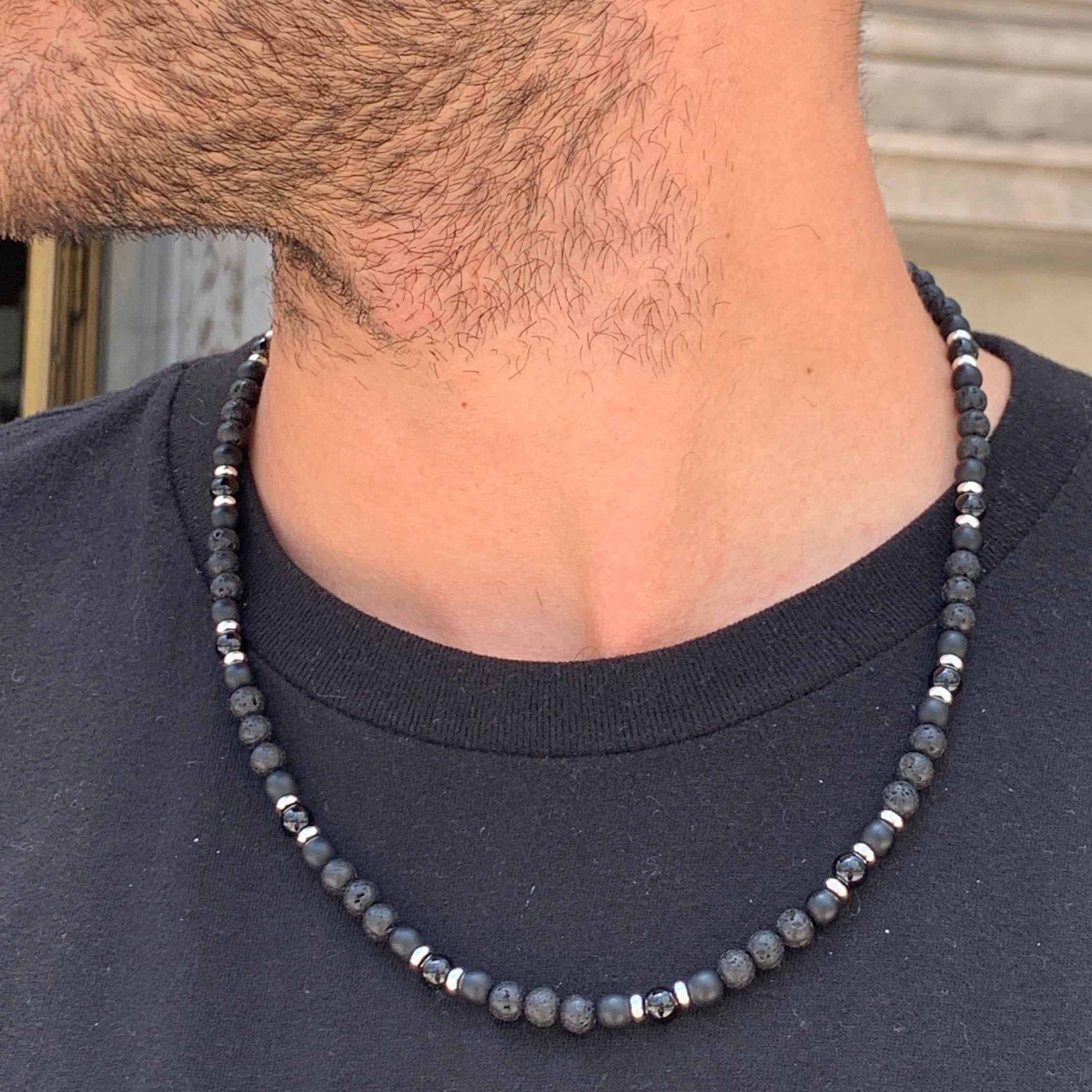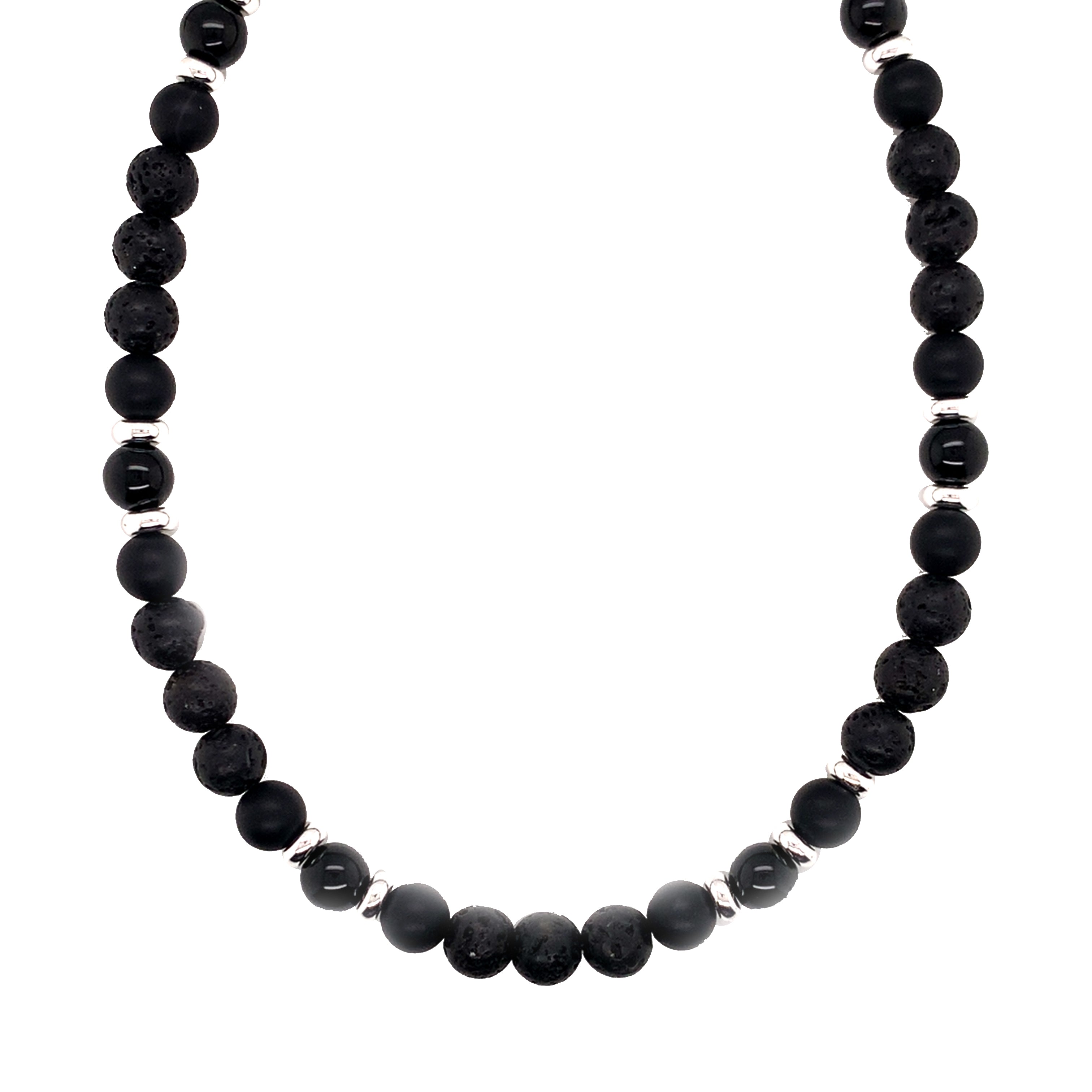 Introducing the bold and powerful Men's Onyx and Lava Beaded Necklace, a captivating accessory that exudes both strength and style. Crafted with volcanic lava beads, sleek onyx stones, and silver accents, this necklace is a true statement piece for the modern man.