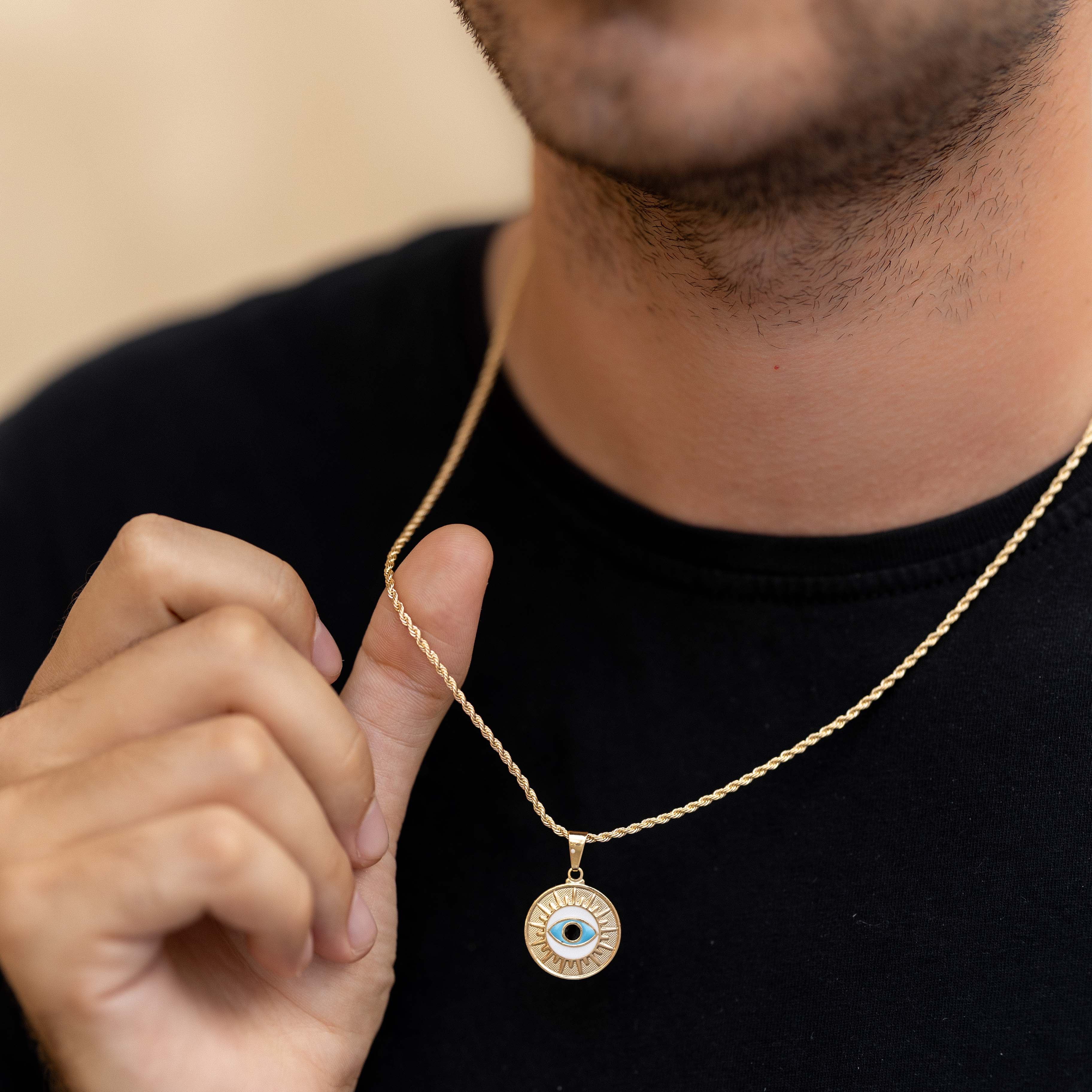 Our Gold Filled Lucky Eye Necklace for Men is a graceful symbol of protection and care. With its classic charm and thoughtful design, this necklace brings peace of mind while adding a gentle touch of style.