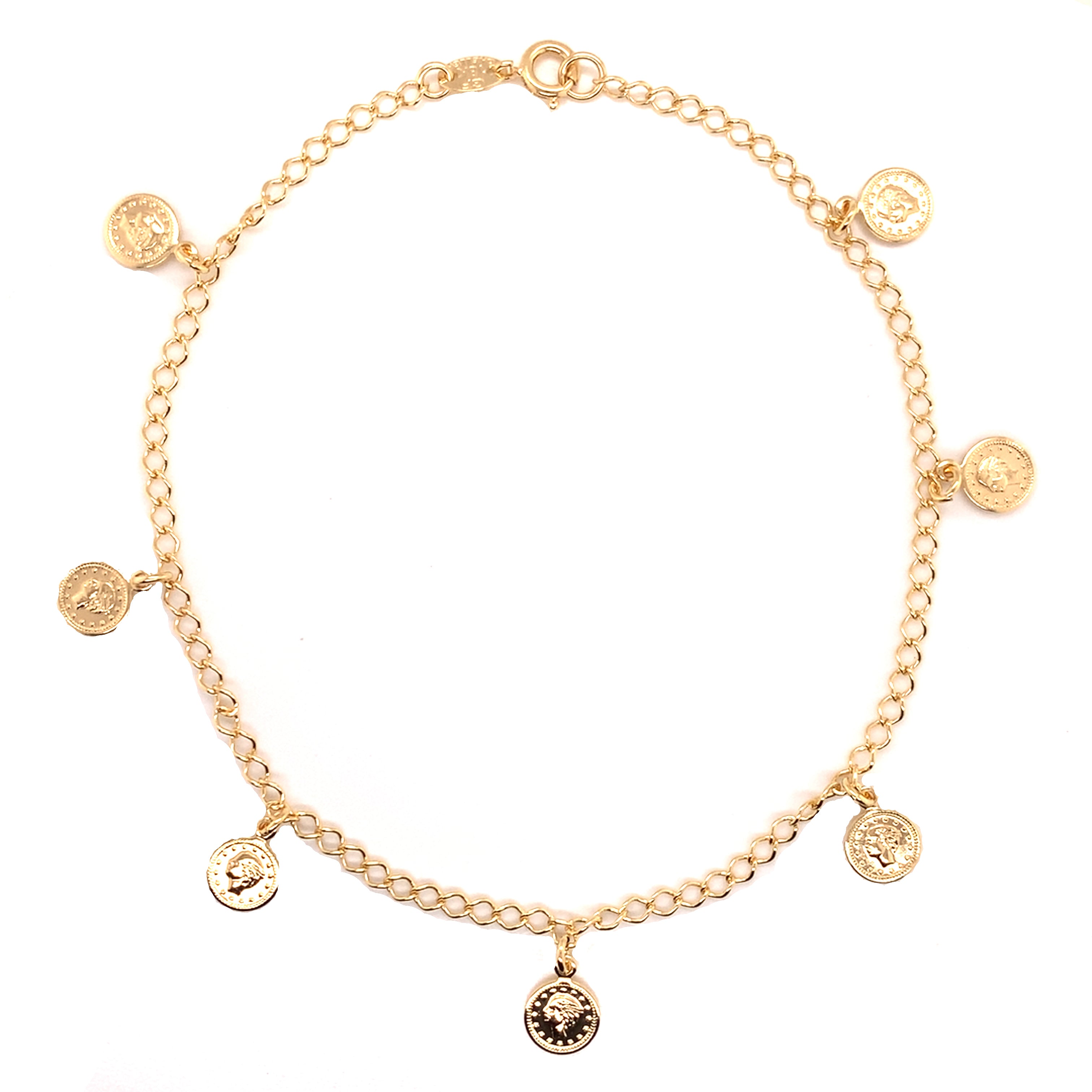- Gold-Filled Coin Charm Anklet with delicate movement
