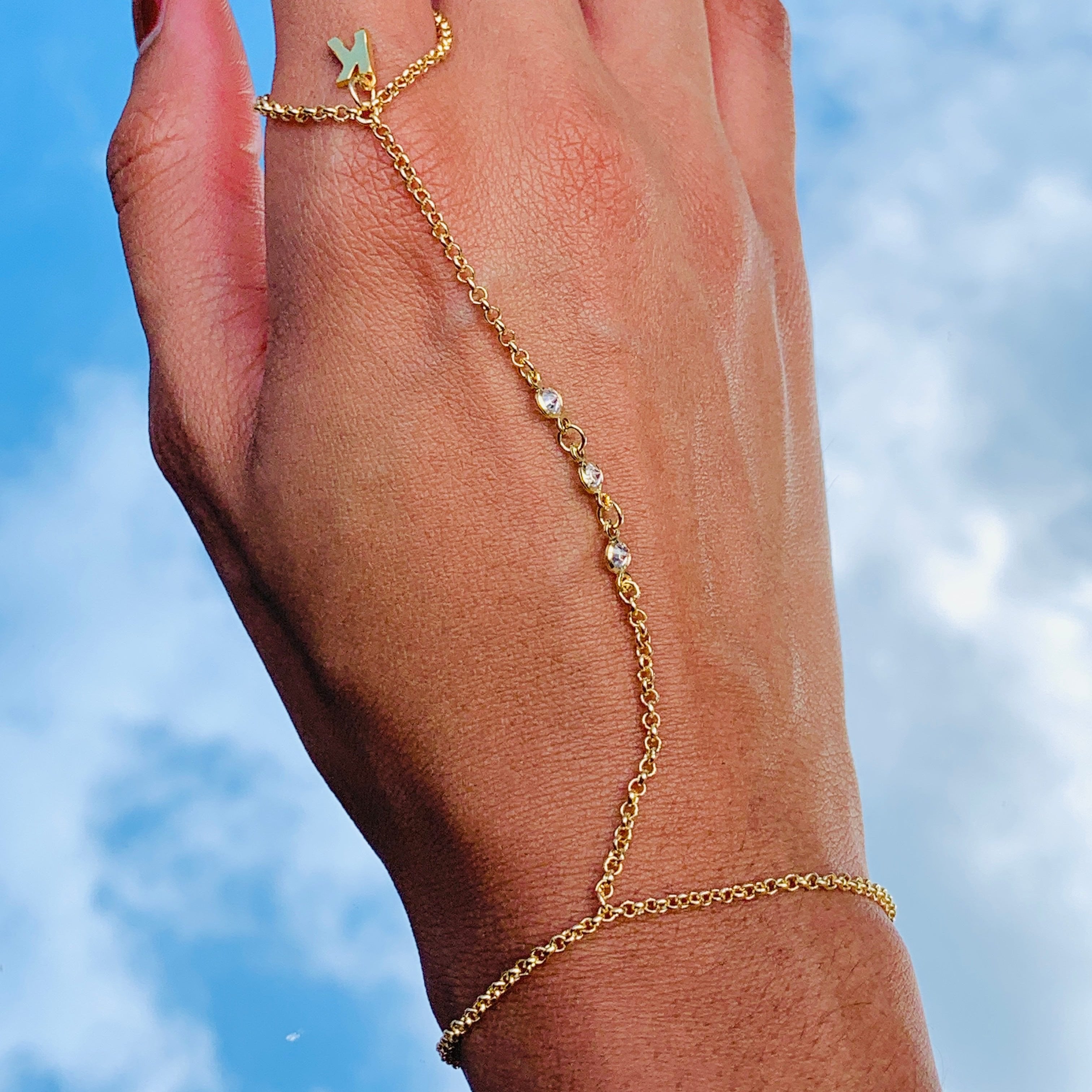 Make a personal statement with our Gold-Filled Lyra Initial Hand Chain Bracelet. This elegant, customizable hand chain allows you to carry your unique identity close to your heart. Made with high-quality gold-filled material, it’s designed to last and shine with every wear. Whether you’re celebrating your initial, a loved one’s, or adding a meaningful touch to your jewelry collection, this hand chain expresses timeless beauty and personal significance.