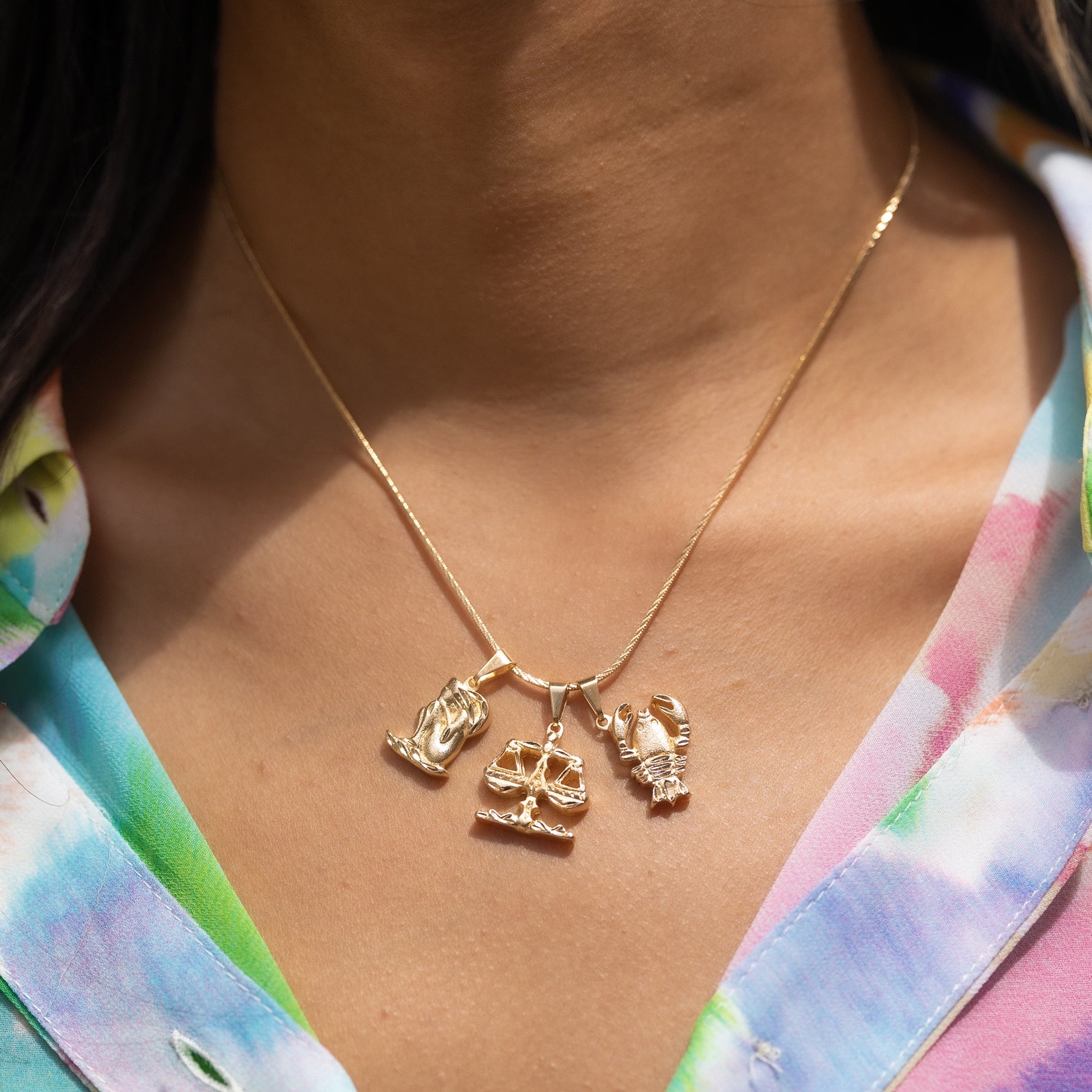 The Mel Zodiac Charm on a 1mm Gold-Filled Box Chain A celestial-inspired piece that blends astrology with refined elegance.