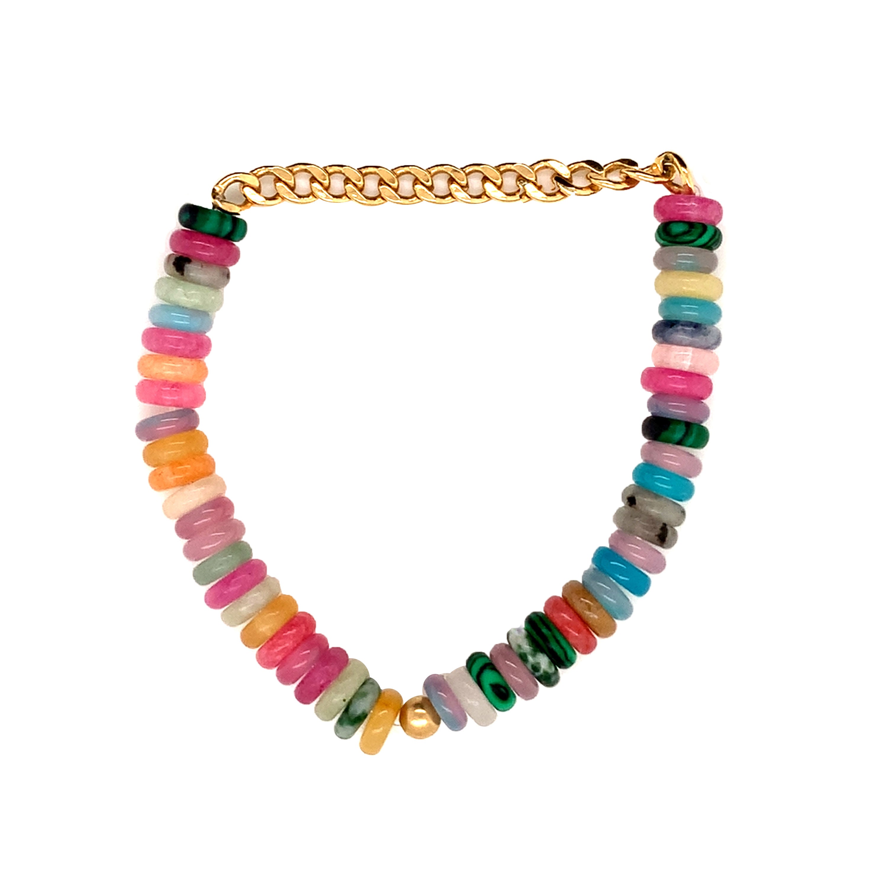 Threaded with a delicate gold chain, the bracelet brings warmth and sophistication, making it just as perfect for casual days as it is for dressing up. Whether worn solo or layered with your favorite pieces, it’s a bracelet that shines with personality.
