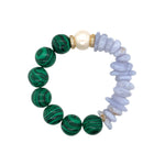 Discover the perfect blend of color and elegance with our Maya Beaded Bracelet. Handcrafted with care, this stunning piece features rich malachite in deep green tones, beautifully contrasted with the soft, calming hues of light blue agate. The delicate pearl accent adds a timeless touch of sophistication, making this bracelet the ideal accessory for any occasion. Whether you're dressing up for a night out or adding a pop of color to your everyday look, the Maya Beaded Bracelet effortlessly transitions from day to night, adding a vibrant yet refined touch to your style.