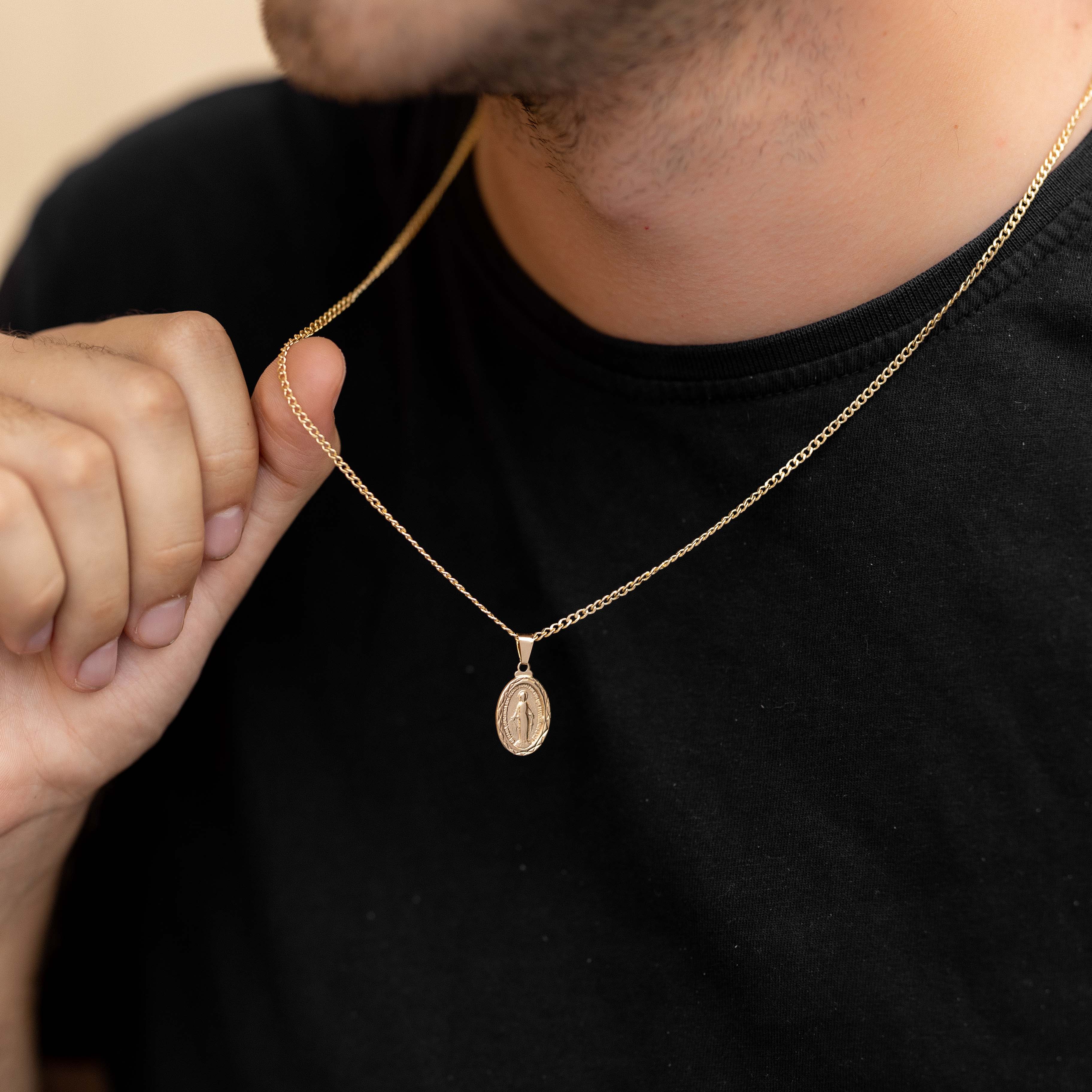 Carry a reminder of faith and grace with our gold-filled Mother Mary Necklace. This meaningful piece serves as a gentle reminder of blessings and protection while enhancing your everyday style.