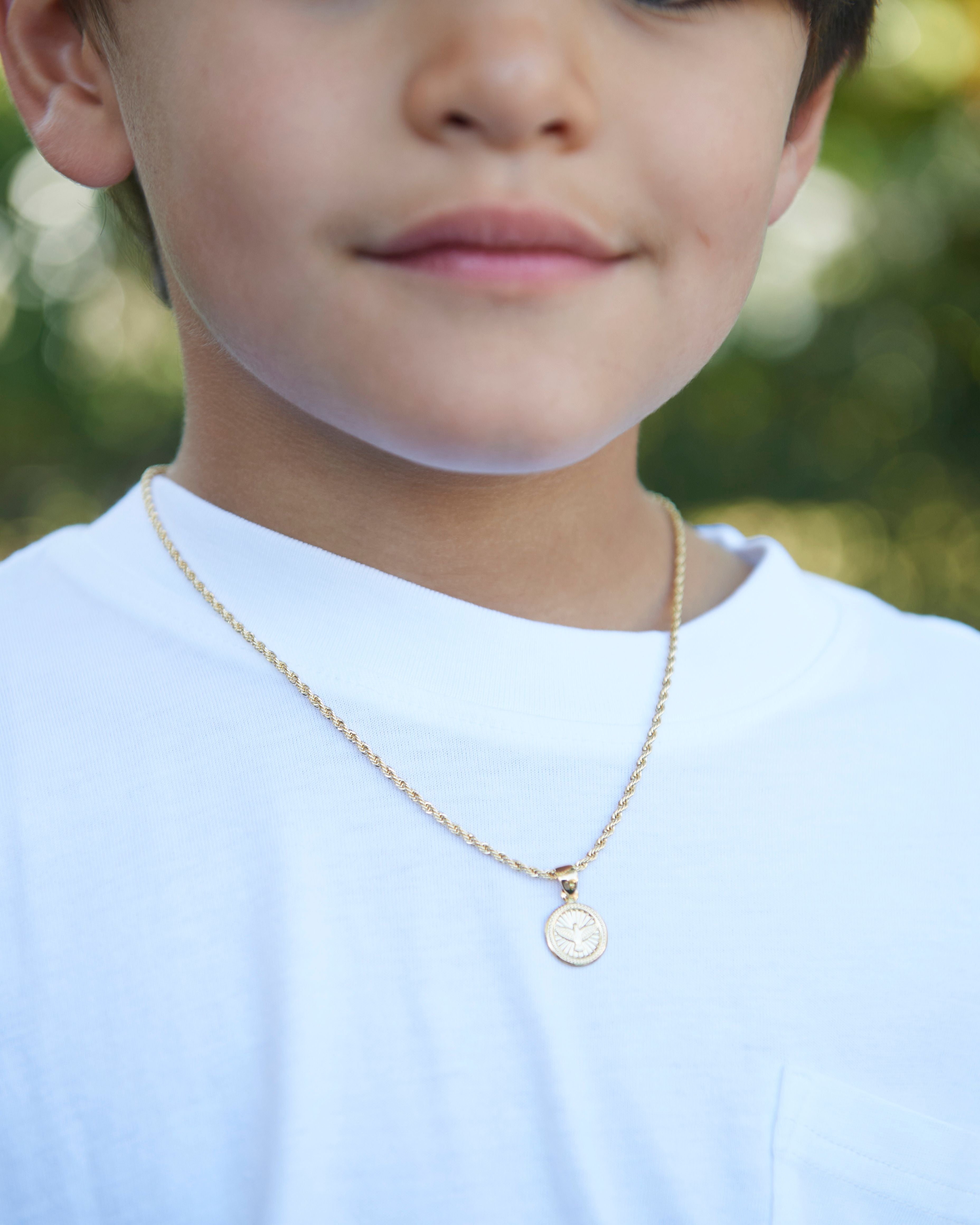 The gold-filled Neo Holy Necklace for Boys carries a quiet strength. It is an elegant reminder of divine presence and love. Whether for a baptism, confirmation, or just because, it’s a graceful piece to uplift and inspire.