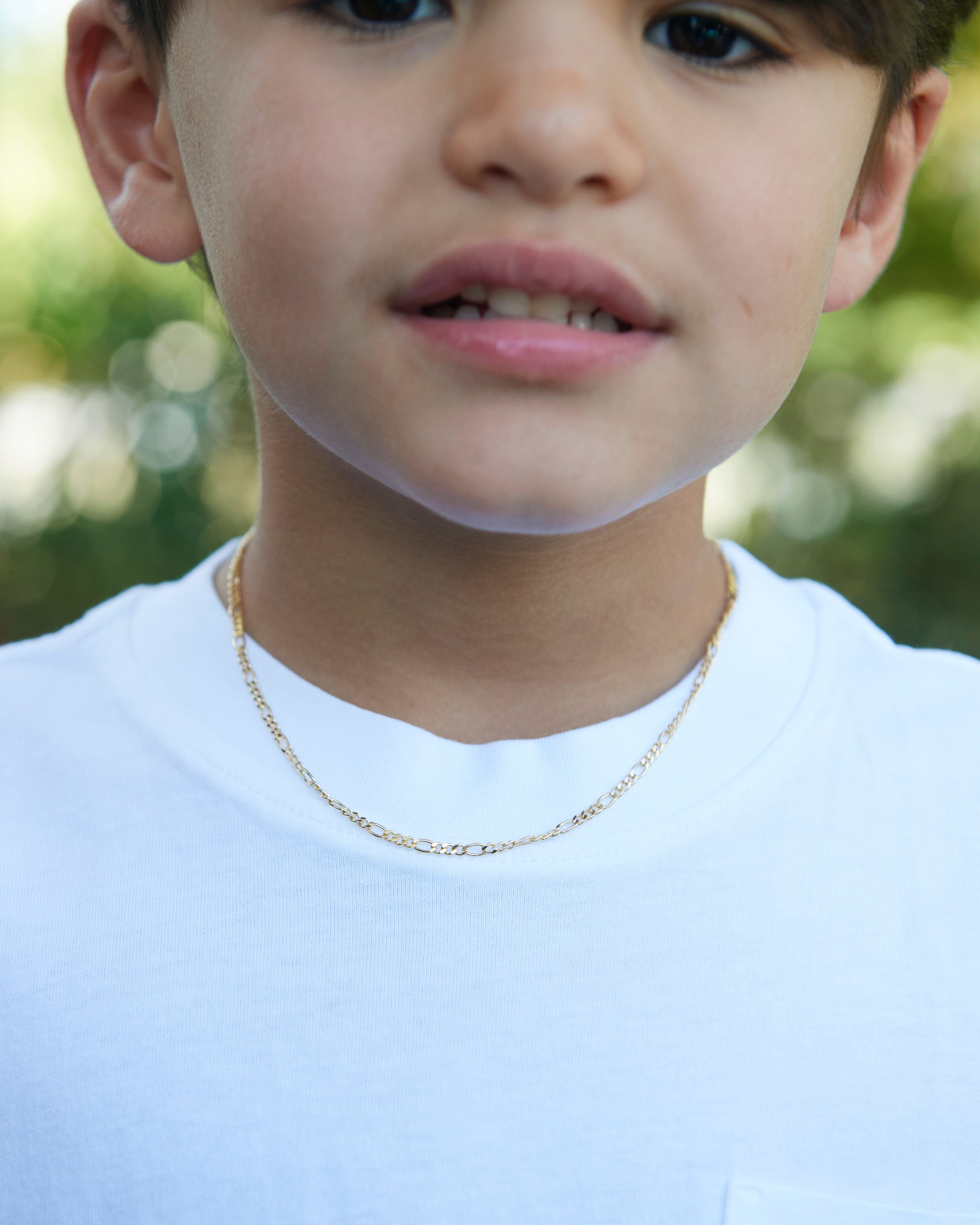 Add a hint of sophistication to your child’s everyday look with our 2mm Owen Mini Figaro Necklace, designed to blend classic style and modern comfort seamlessly. This delicate yet sturdy piece gives young trendsetters an easy way to express their personality while staying comfortable all day long.