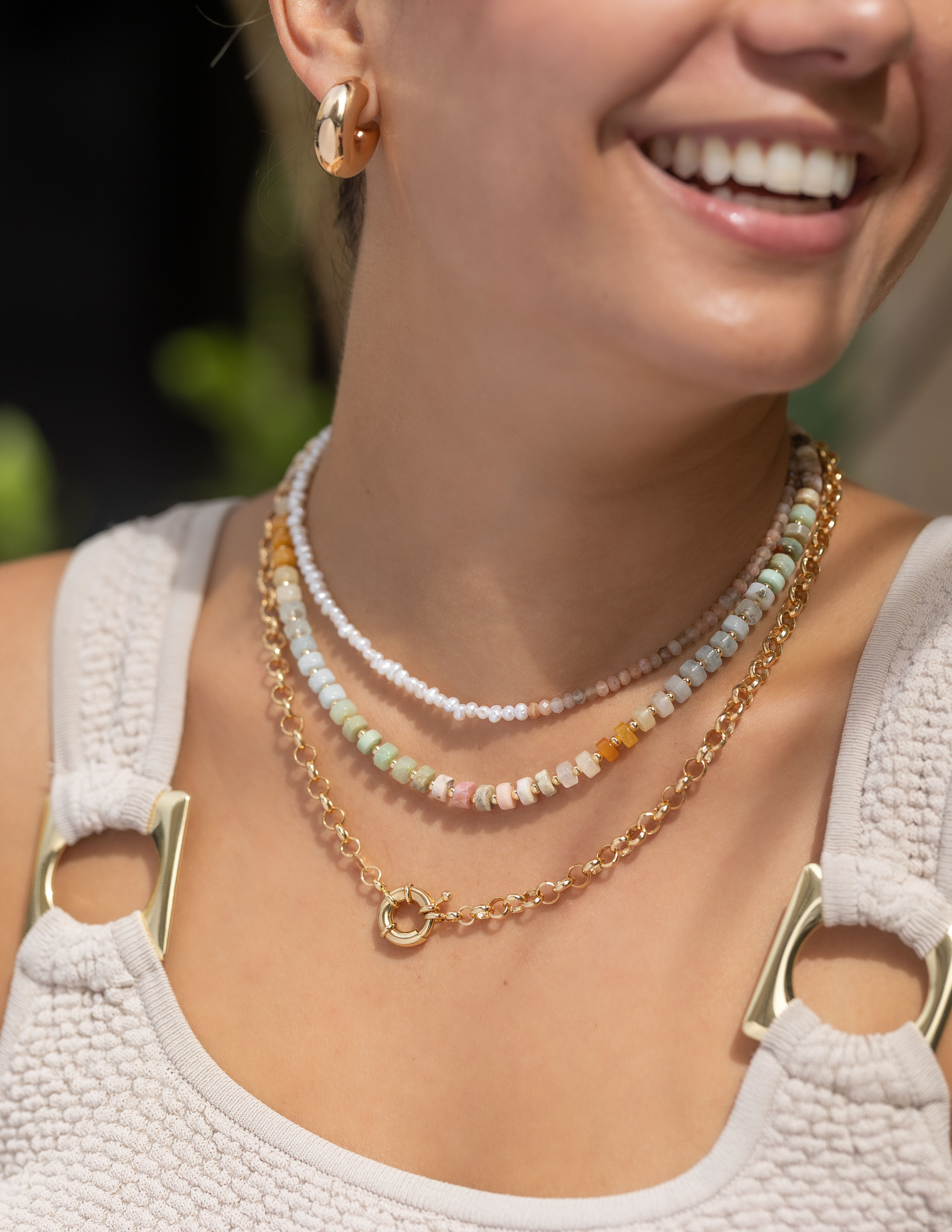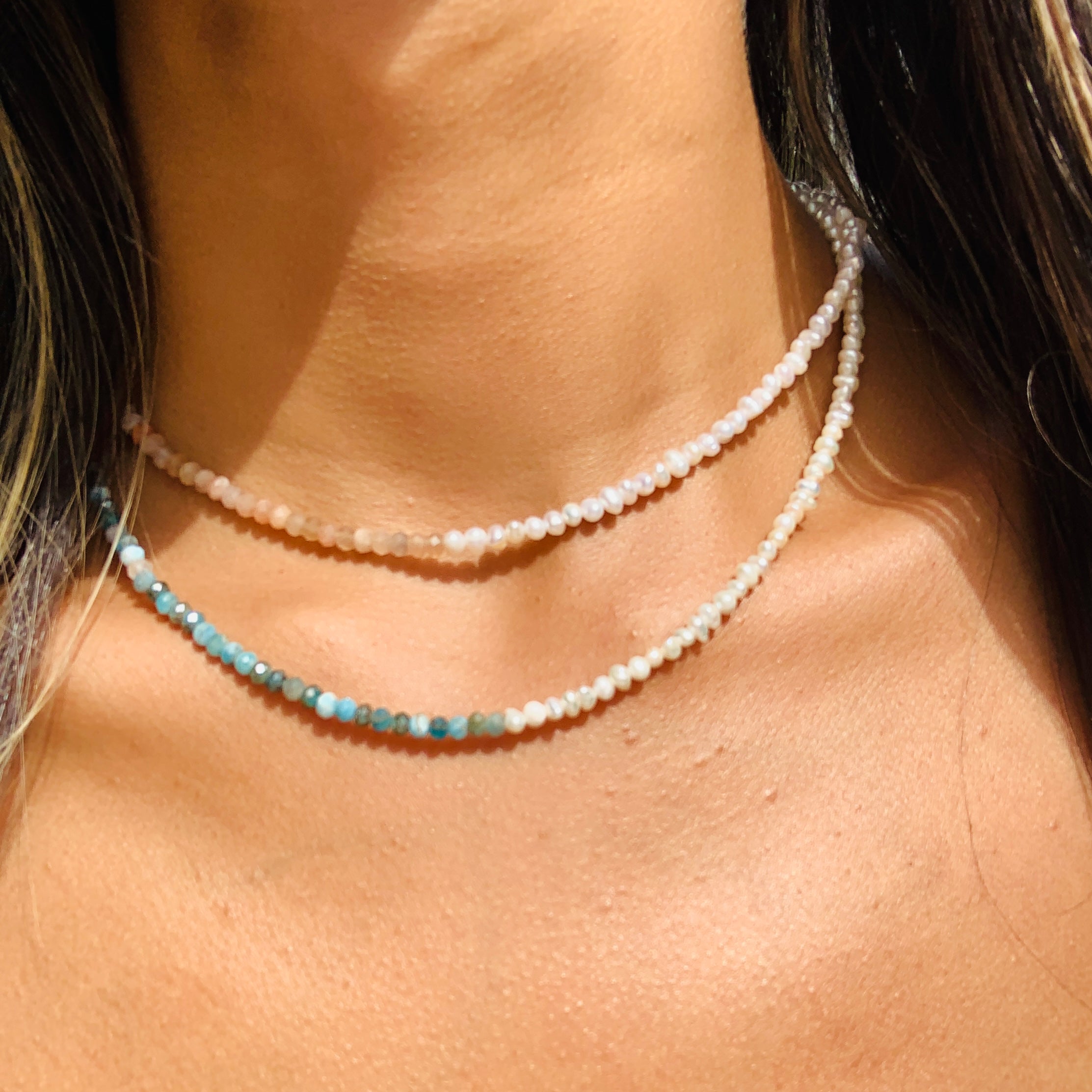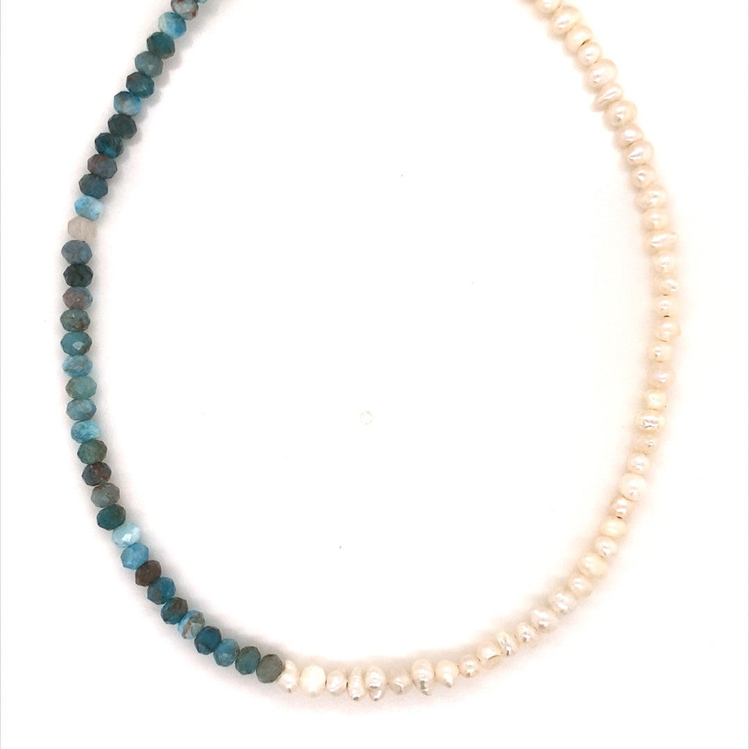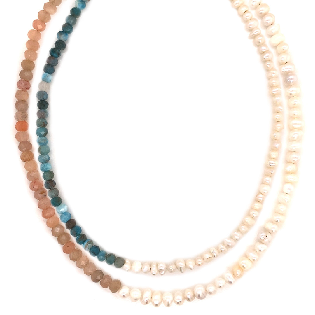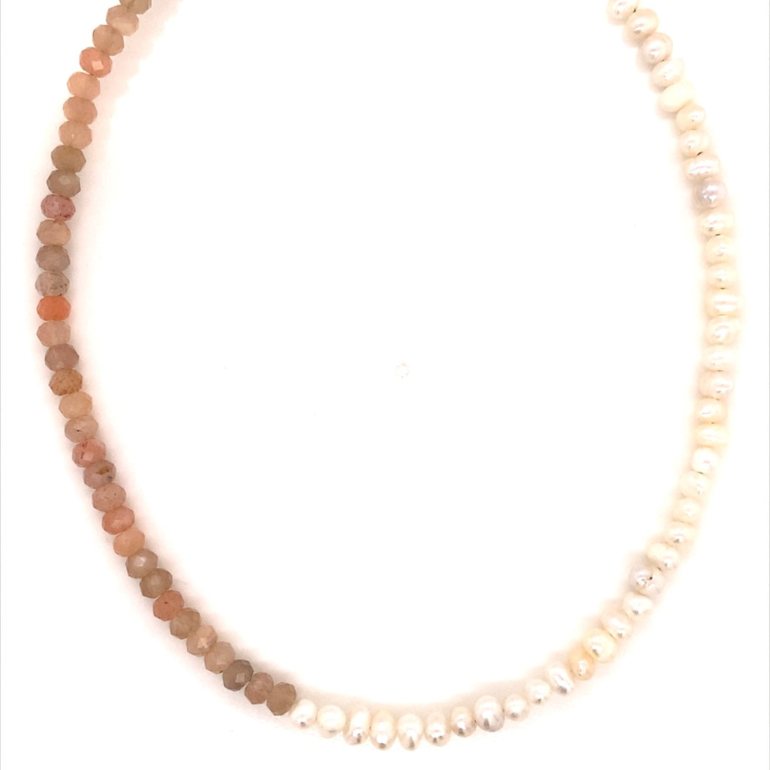 The best of both worlds with our Half Pearlsx Half Gemstones Necklace.