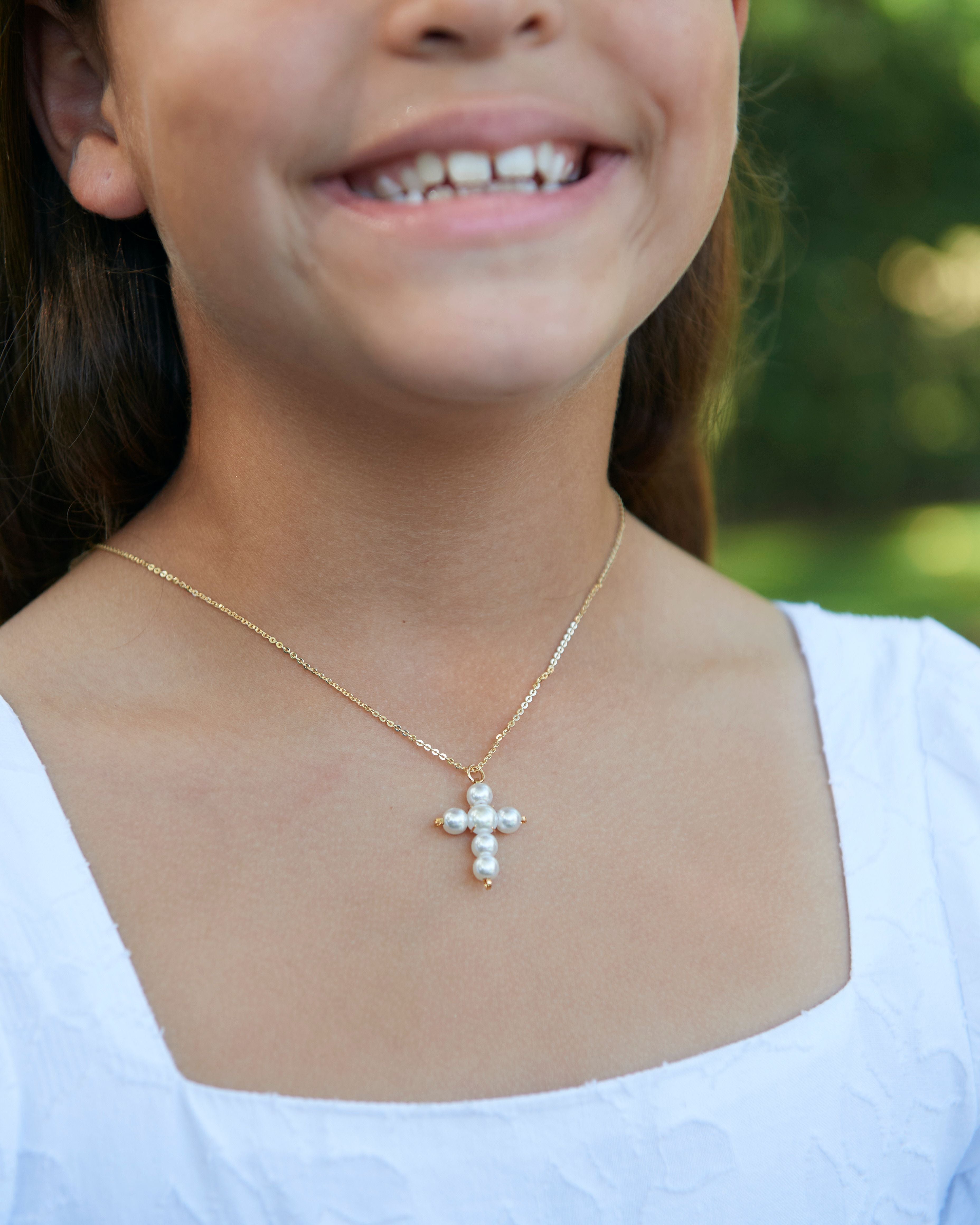 A delicate blend of faith and elegance, our River Pearl Cross Necklace is designed for little girls. Whether it’s for a special occasion or everyday inspiration, it’s a sweet reminder of love, grace, and spiritual beauty.