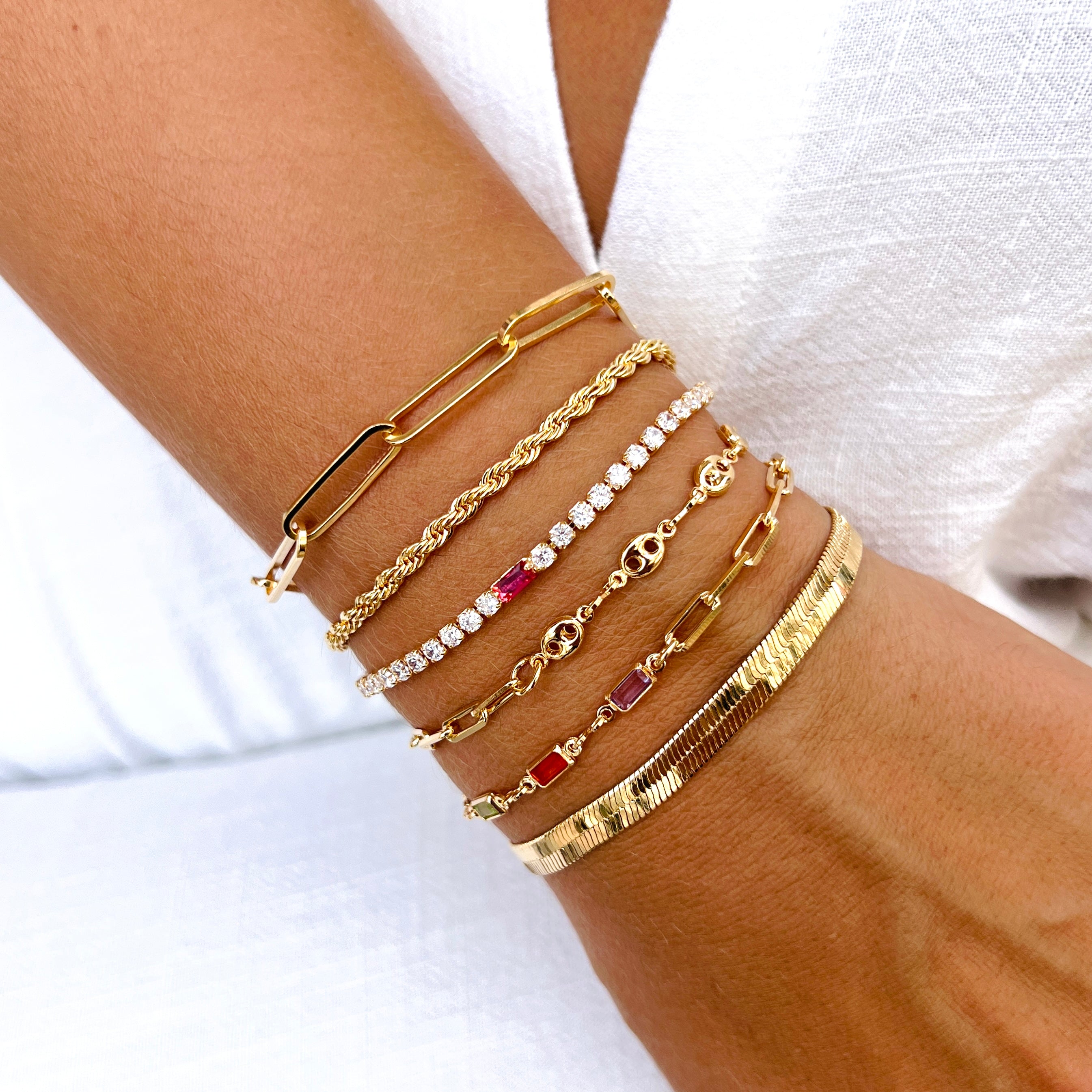 Make a statement with our Gold-Filled Rope Bracelet, a timeless and elegant accessory that radiates sophistication and style. The intricate rope chain design adds a touch of texture and visual interest, making it a versatile addition to any jewelry collection. Whether worn alone or layered, this bracelet enhances any ensemble with effortless elegance.