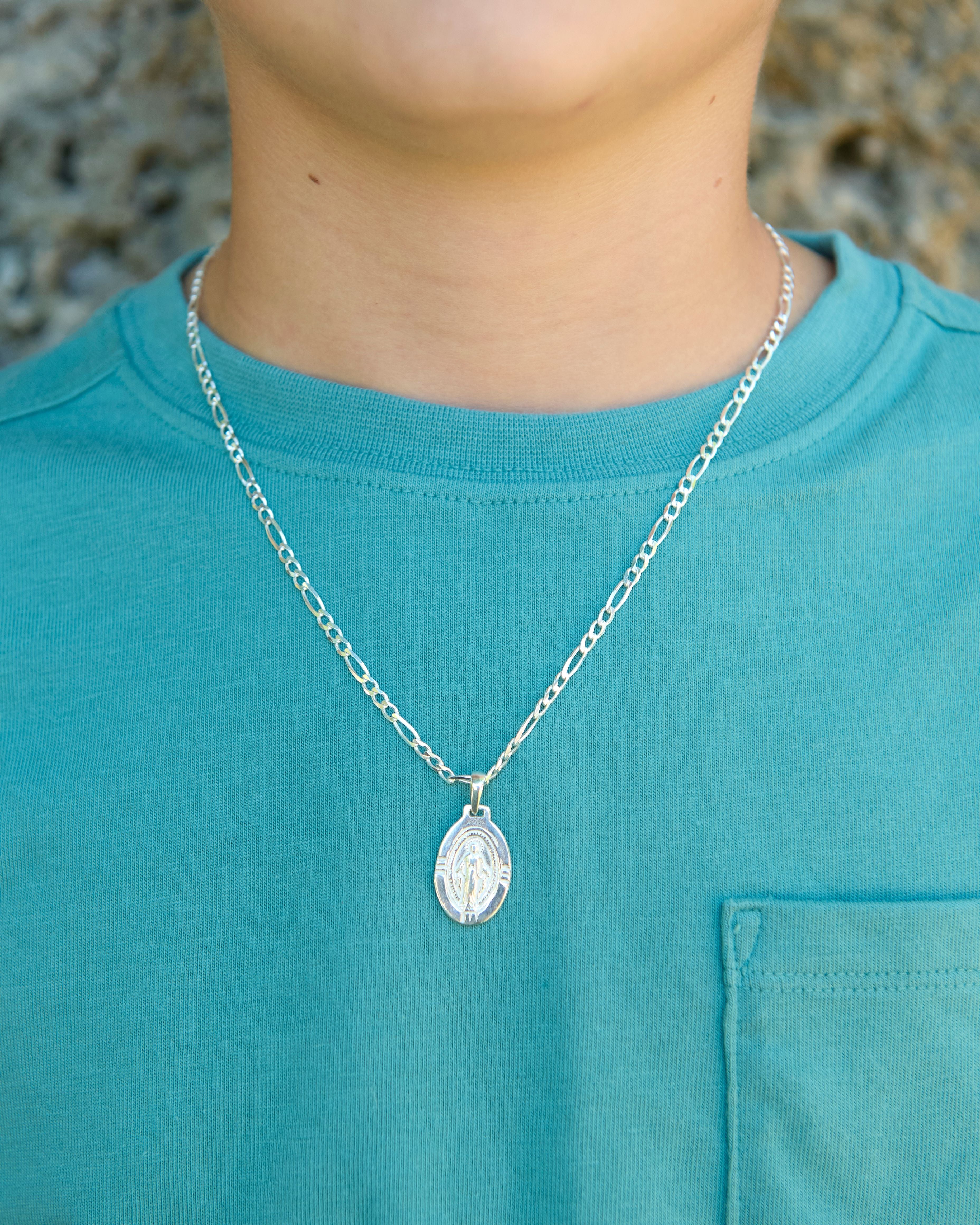 A beautiful expression of faith and protection, our Hawke Miraculous Necklace is made with genuine sterling silver and designed for kids. A timeless symbol of the Virgin Mary's love and guidance, it’s a meaningful piece they can carry close to their heart.