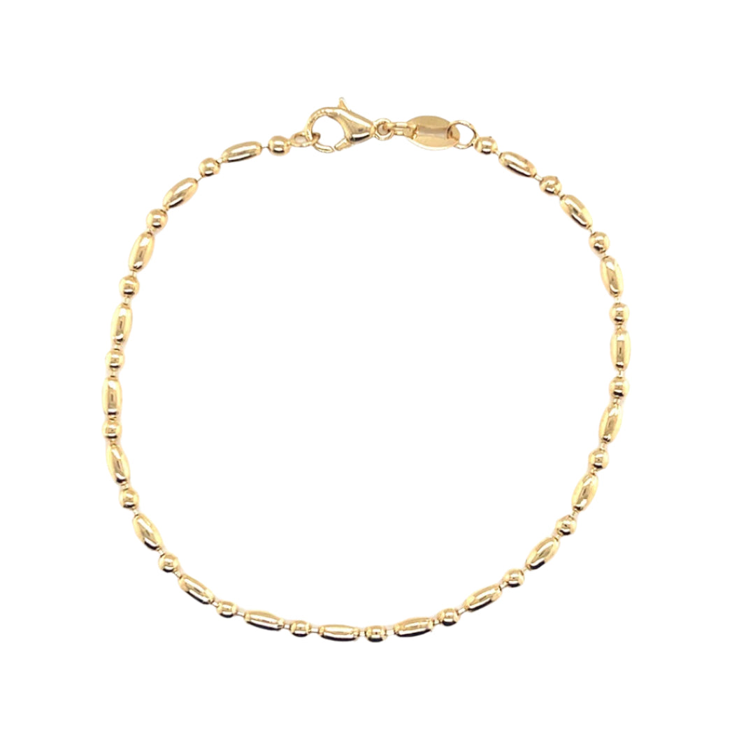The Gold Filled Estelle Ball Bracelet is a stunning piece that combines modern charm with classic elegance. Whether paired with a casual outfit or worn to complement evening wear, its sophisticated design effortlessly enhances your look.