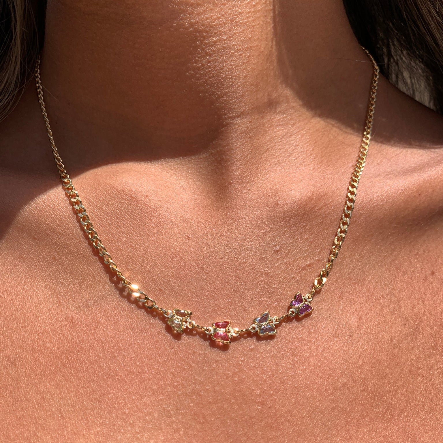 Experience the enchanting beauty of our Butterfly Gemstone Necklace Chain, a piece that captures the grace and vibrance of nature. This delicate chain is adorned with exquisite butterfly-shaped gemstones, each radiating brilliant hues that add a touch of whimsy and elegance. Perfect for any occasion, this necklace brings a sense of joy, freedom, and effortless charm to your look.